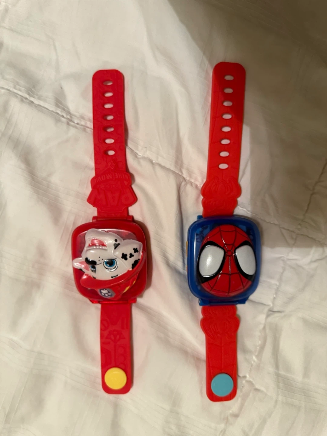Selling a bundle of two kids' watches! One is a Paw Patrol watch featuring Marshall, and the other is a Spiderman watch. Both are red and in great condition, perfect for any young fan