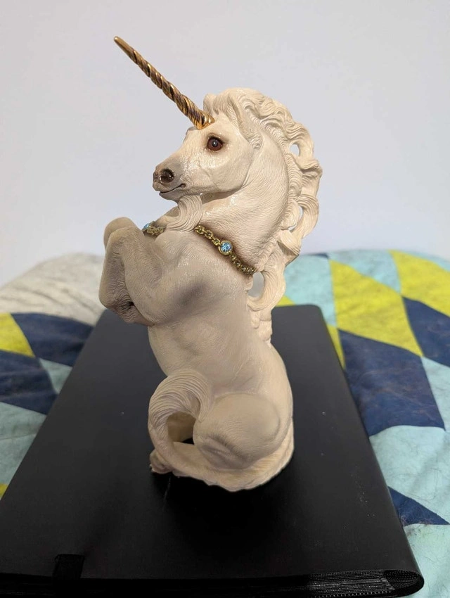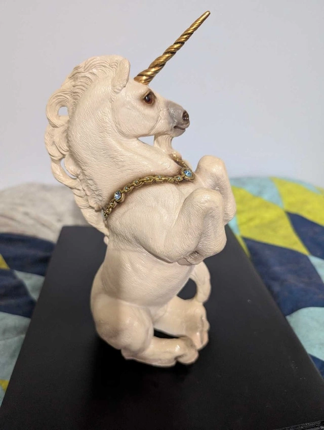 This Windstone Editions unicorn figurine, designed by M. Pena in '89, is a captivating piece for any collector! This unique statue features a detailed design and is in good condition.