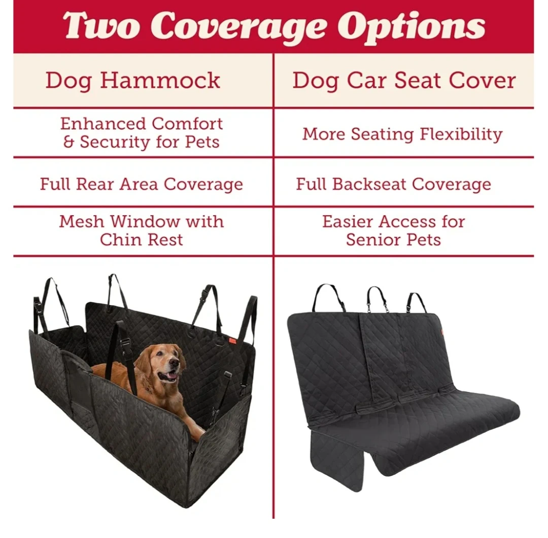 Lusso Gear Dog Car Seat Cover for Back Seat - 100% Waterproof Dog Hammock - Padded Headrest and Mesh Window - Passenger Compatible Rear Car Seat Cover - Fits Trucks, SUVs, Cars