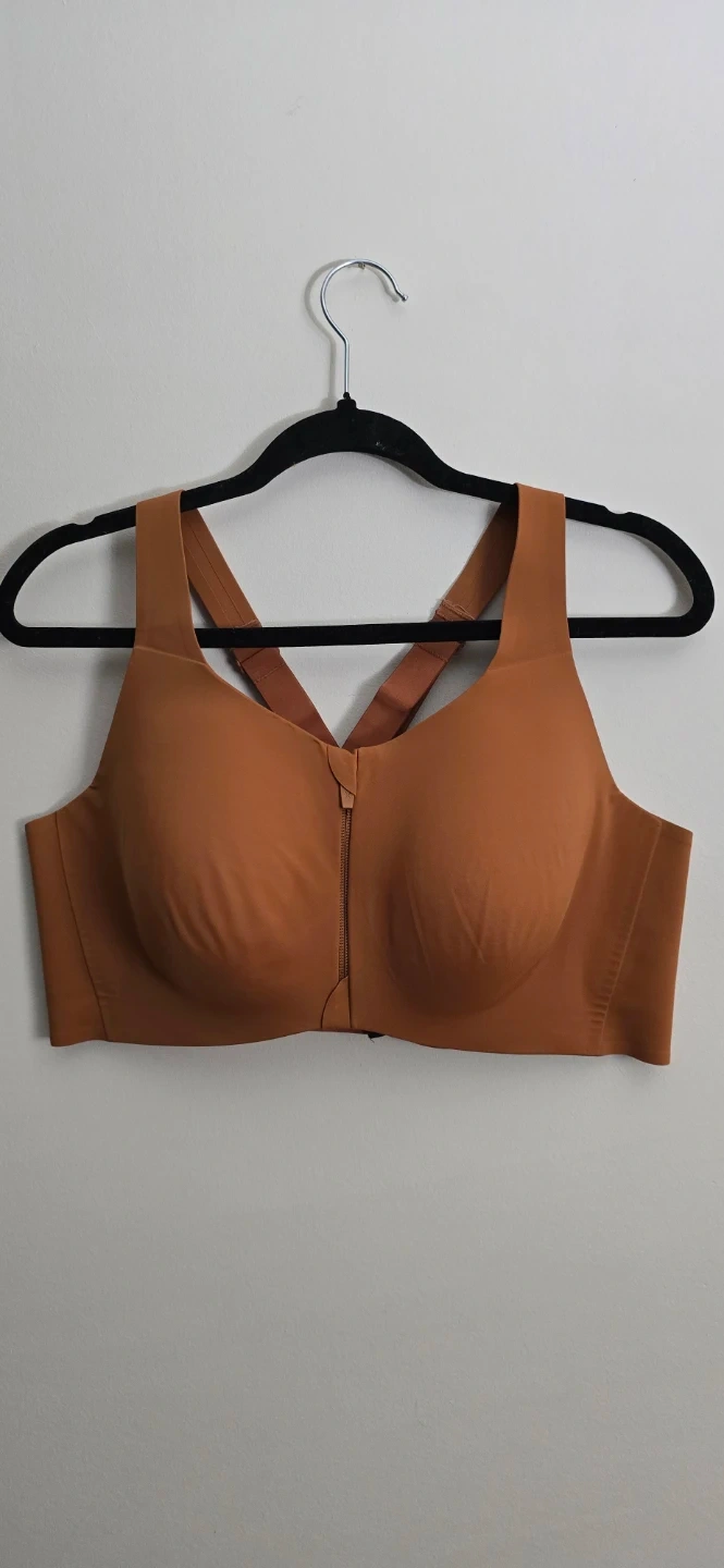 Selling a Knix Catalyst Front Zip Bra in size 38DD. It's in great condition and features a convenient front zip closure. The colour is a lovely brown shade. Perfect for workouts or everyday wear!