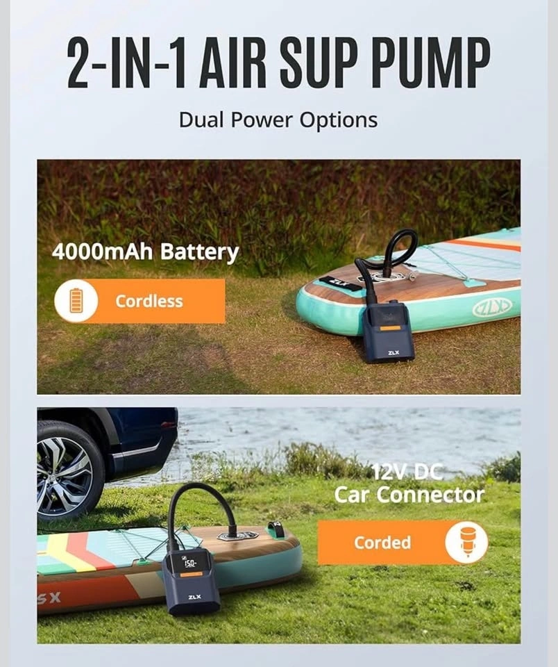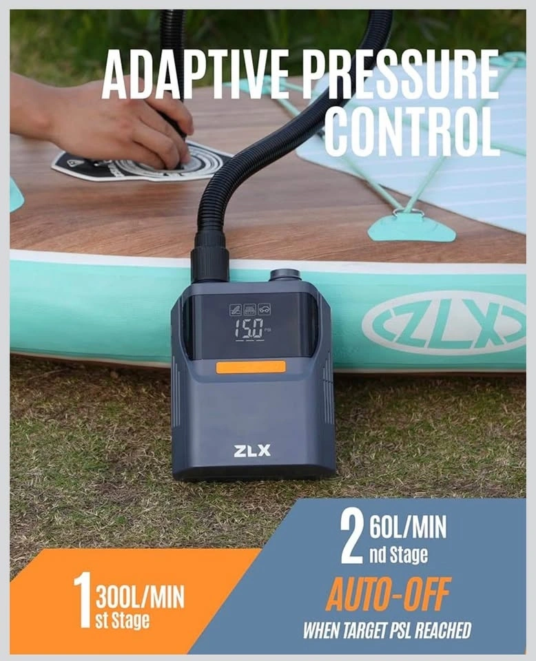 ZLX Electric air Pump, 50PSI Air SUP Pump with High Pressure Dual Stage, Auto-Off Inflation/Deflation & Rechargeable Paddle Board Accessories for Inflatables, Kayaks, Boats, Air Mattresses, car tires