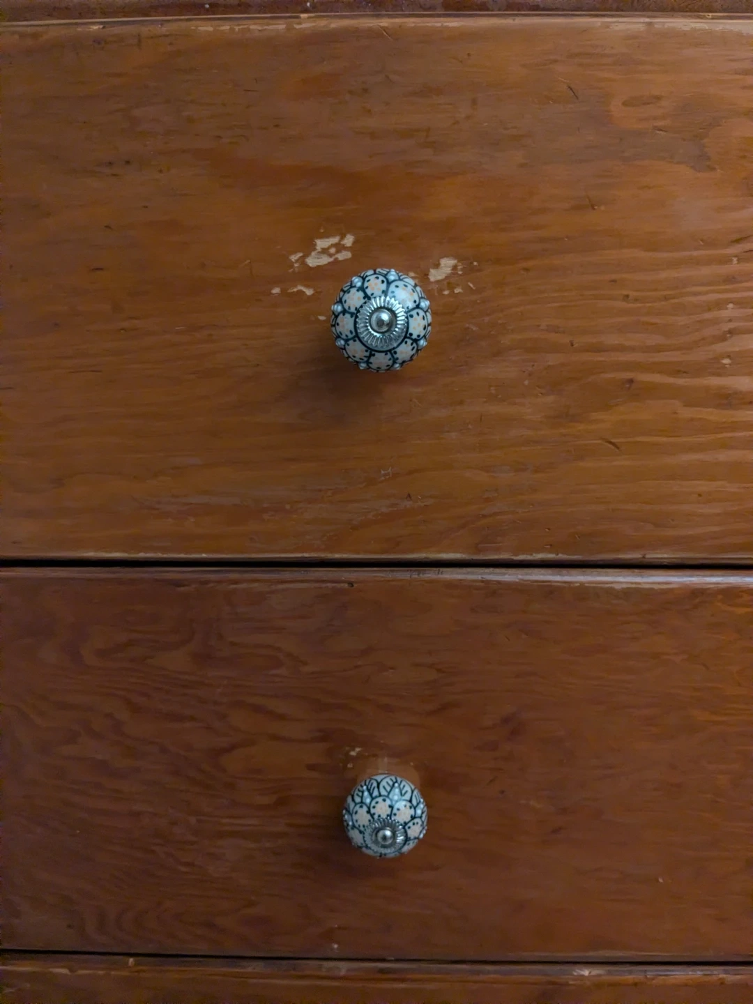 gorgeous wood dresser with beautiful drawer knobs! good for storing anything your heart desires! dimensions are 43" H 38 1/2" L 18" W.