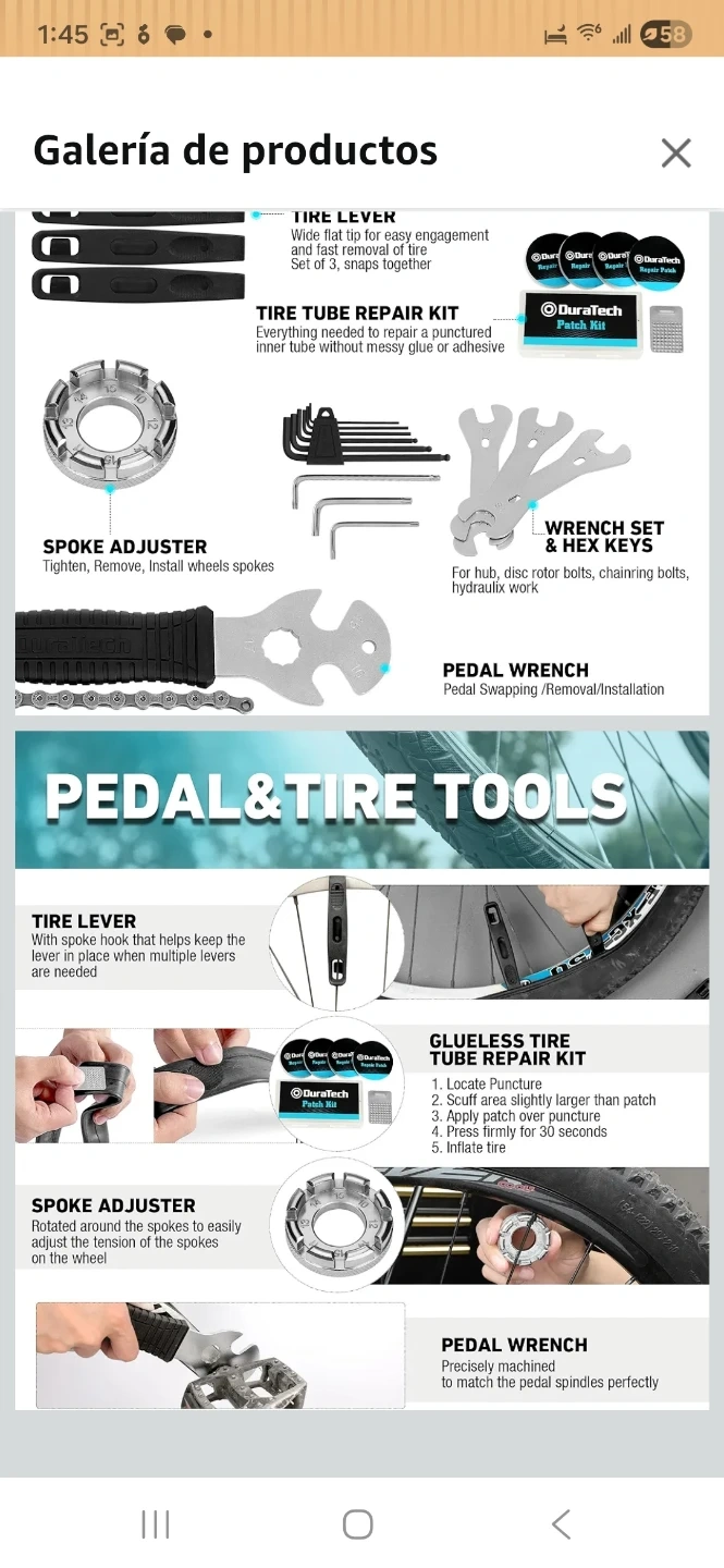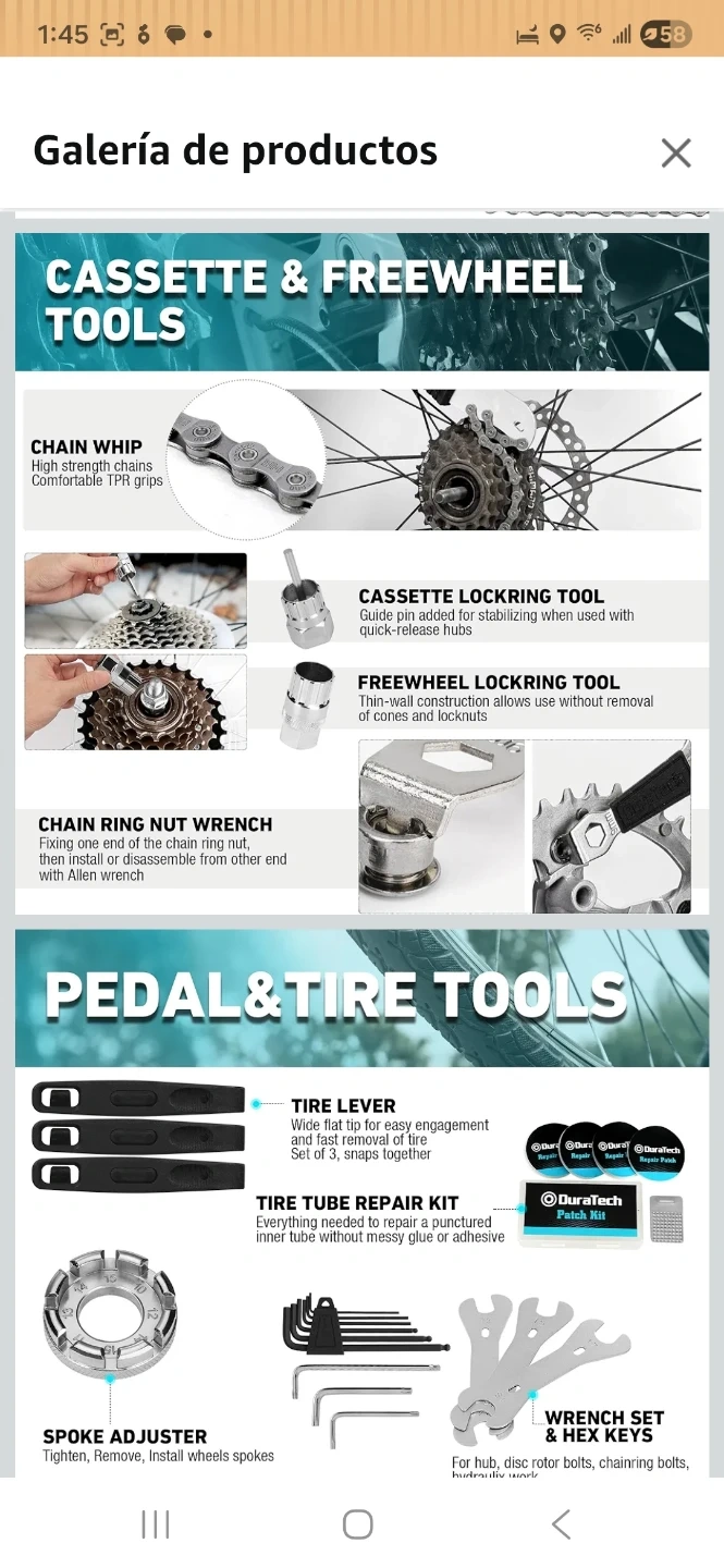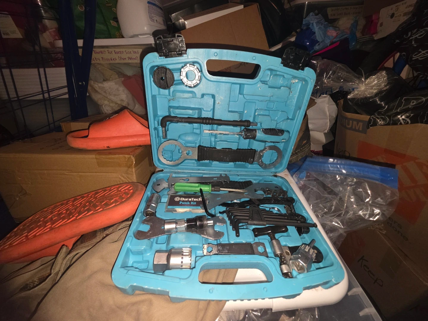 Selling a DuraTech 41-piece bicycle repair tool kit! It includes a variety of tools for bike maintenance and repairs, all neatly organized in a blue carrying case. The kit features tools for crank removal, chain repair, tire levers, spoke adjustment, and more. Perfect for any cyclist looking to keep their bike in top condition