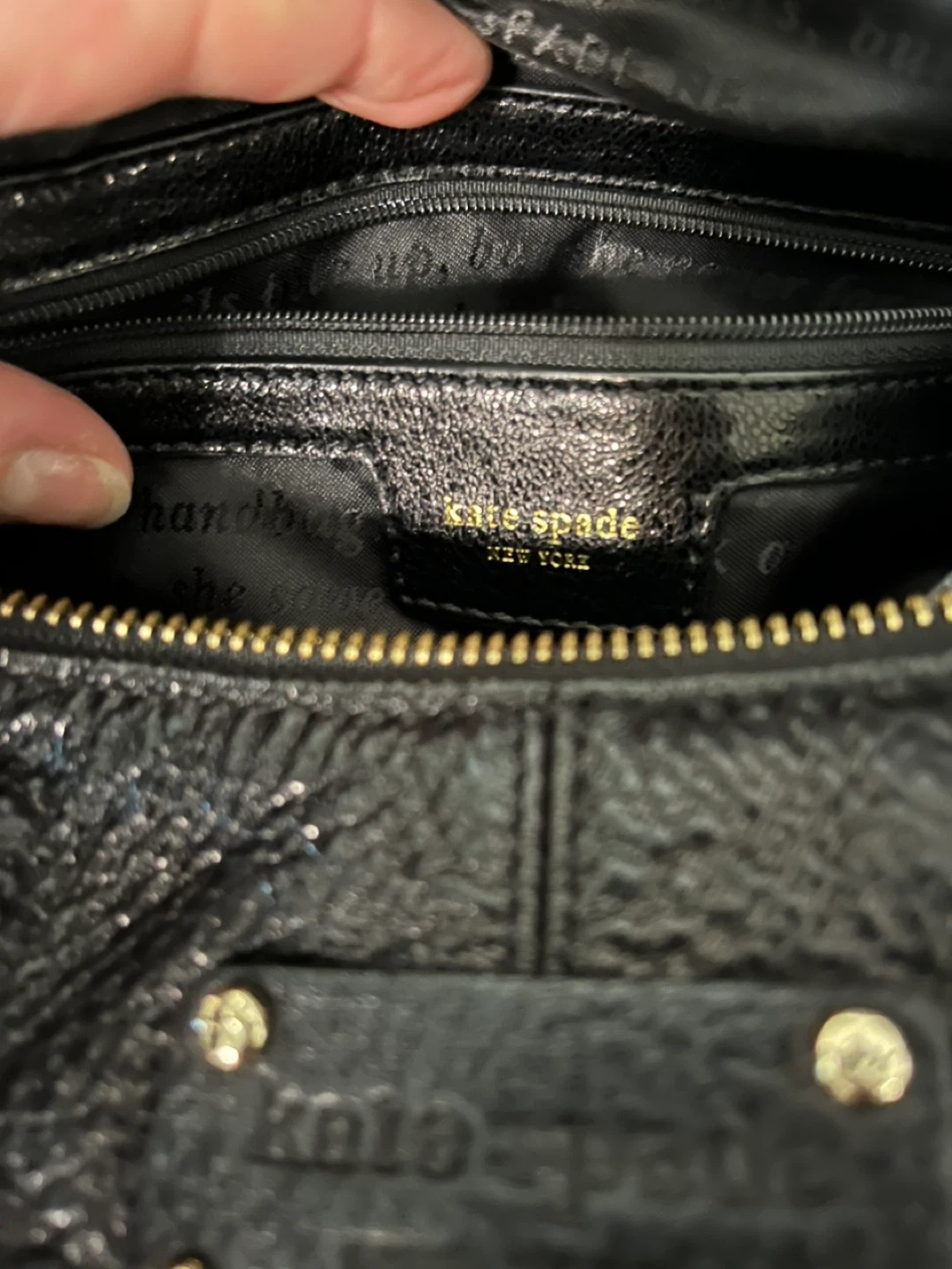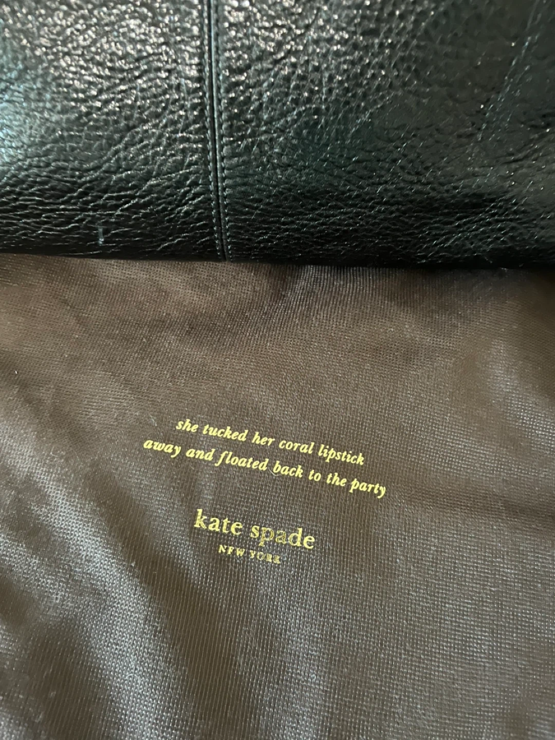 Leather has a sparkle through it! I’ve never seen one like it! Just too large for my petite frame in my opinion! Has been stored on a shelf Is as the day it arrived.