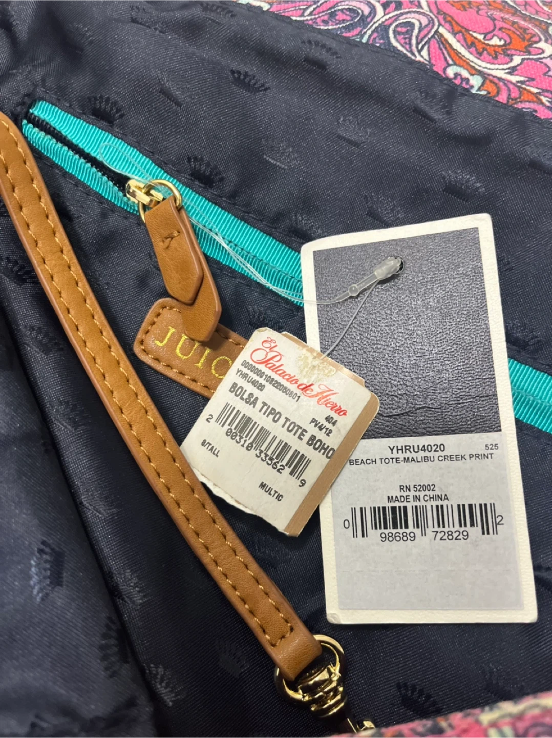Juicy Couture Pink Paisley Tote Bag