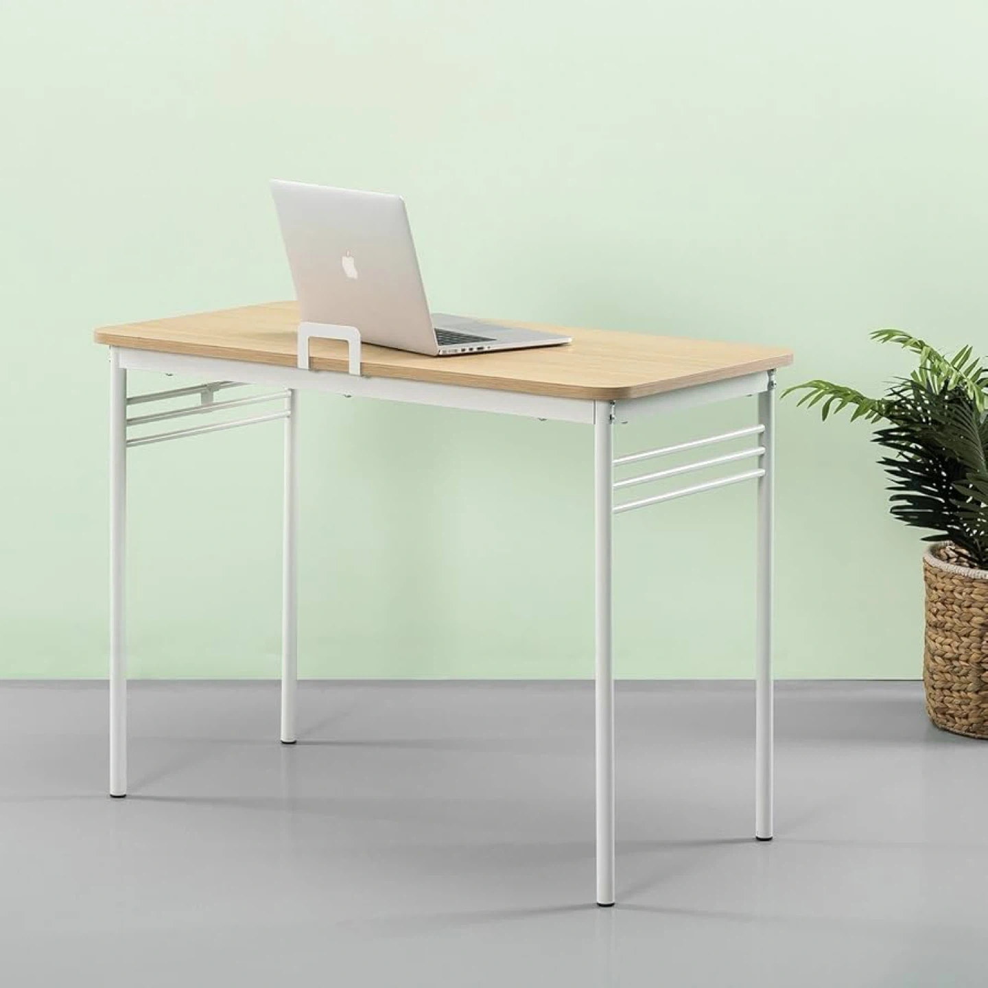 Wood Top Desk with White Metal Frame 39.4"