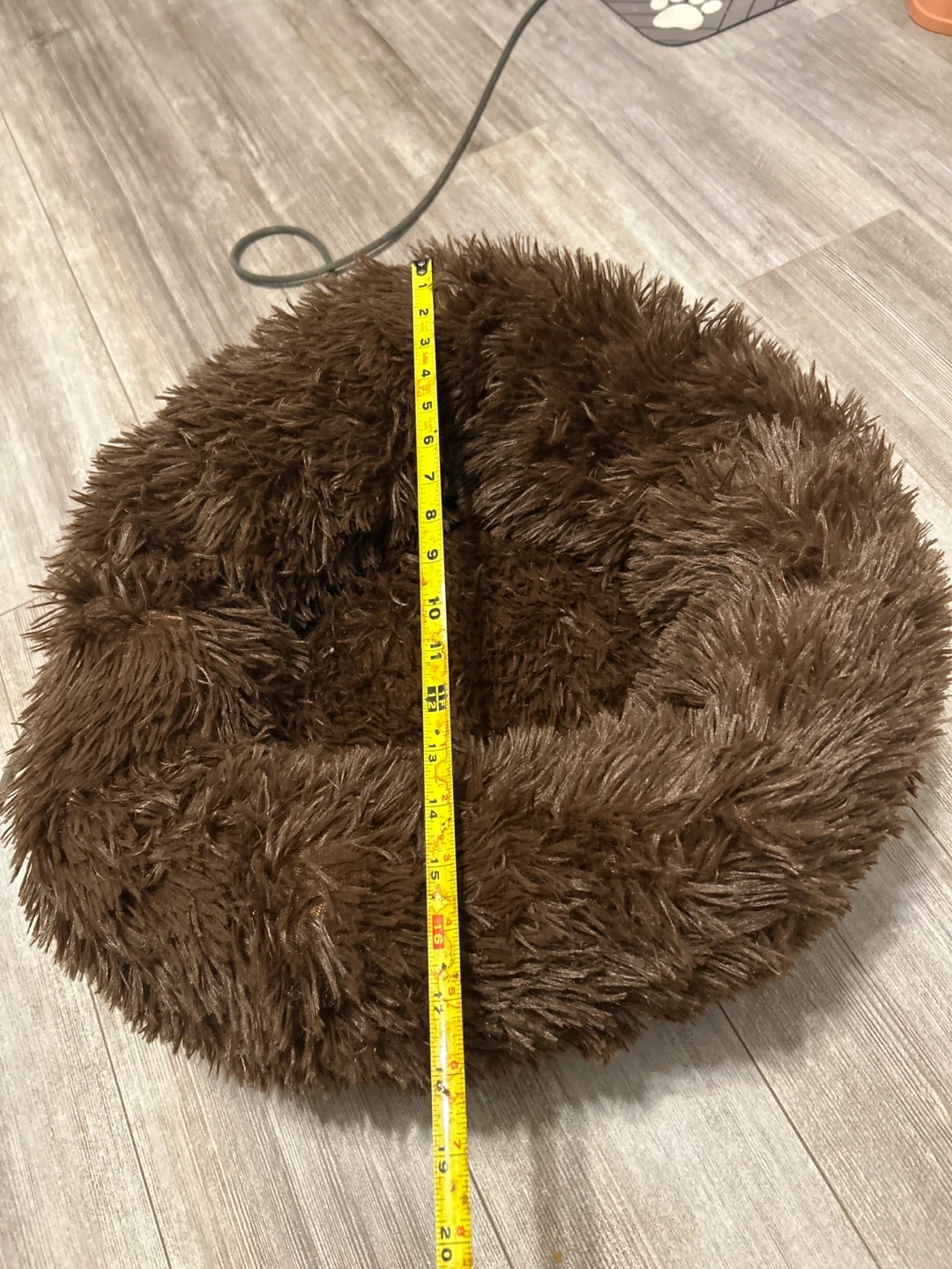 Selling a cozy, round pet bed in a lovely brown colour! It's super plush and making it perfect for a small dog or cat. Your furry friend will love snuggling up in this soft bed
