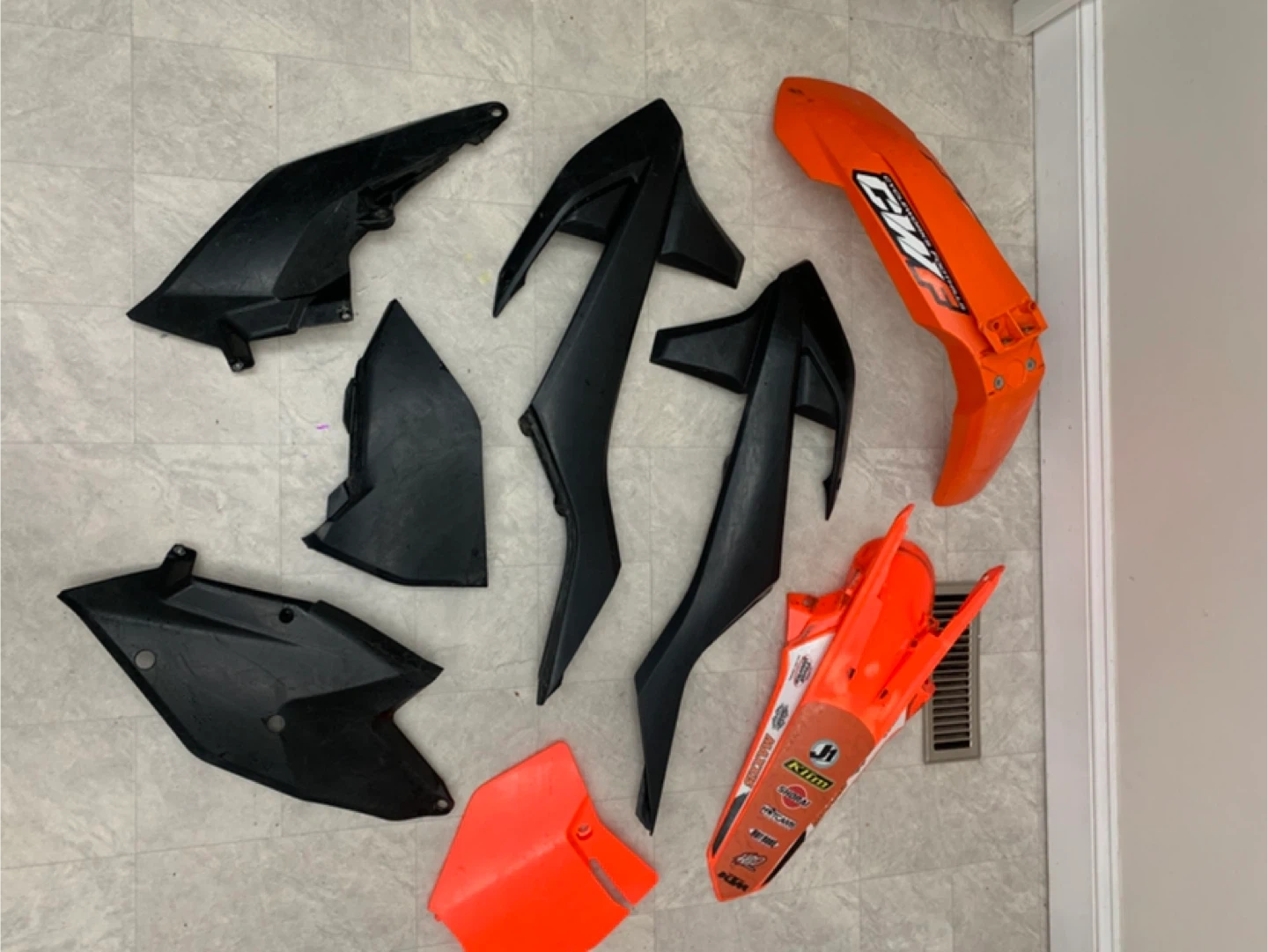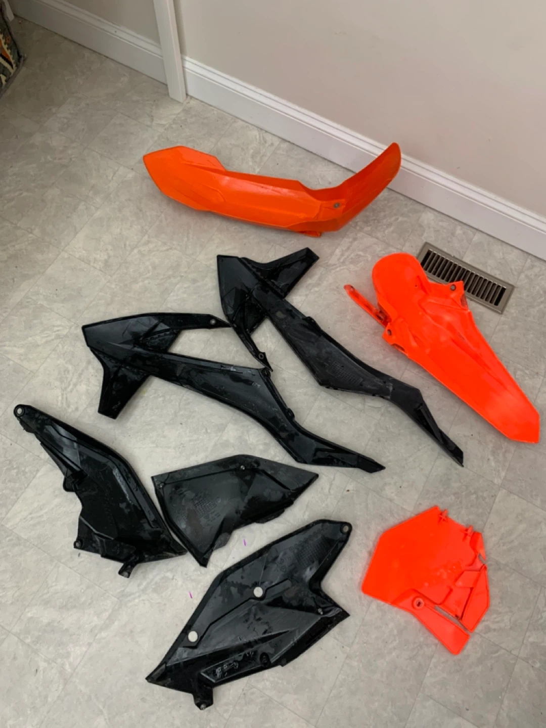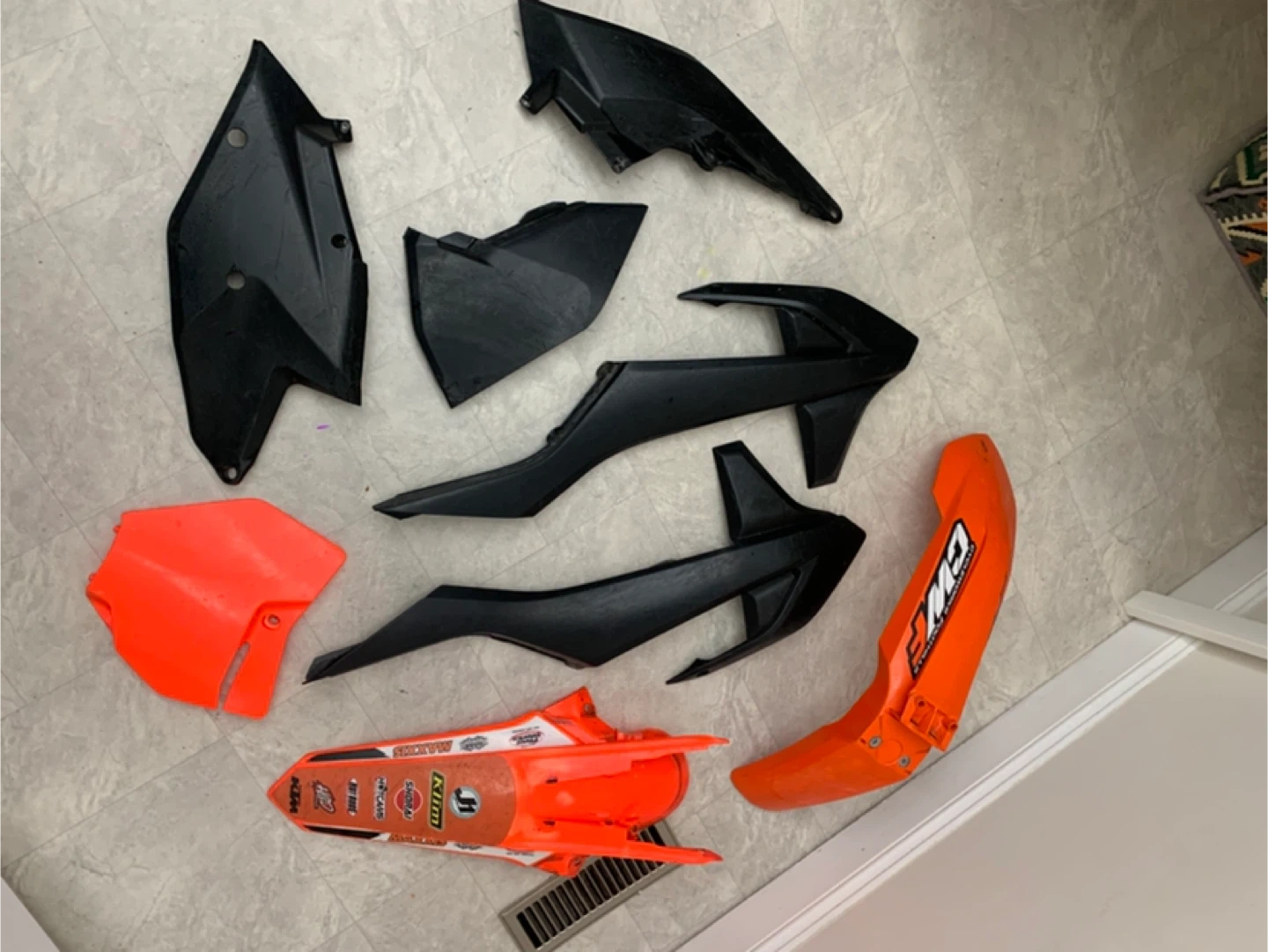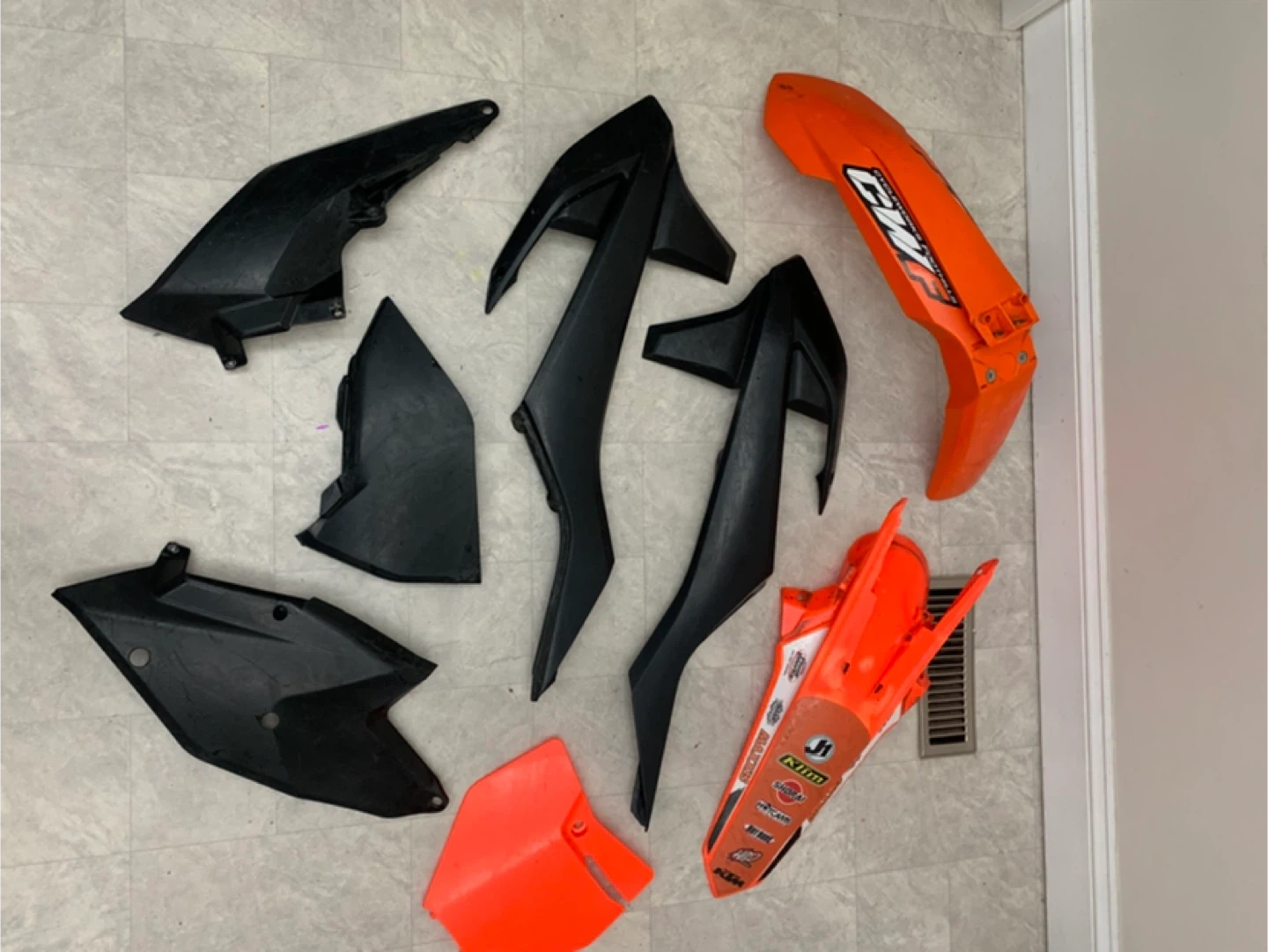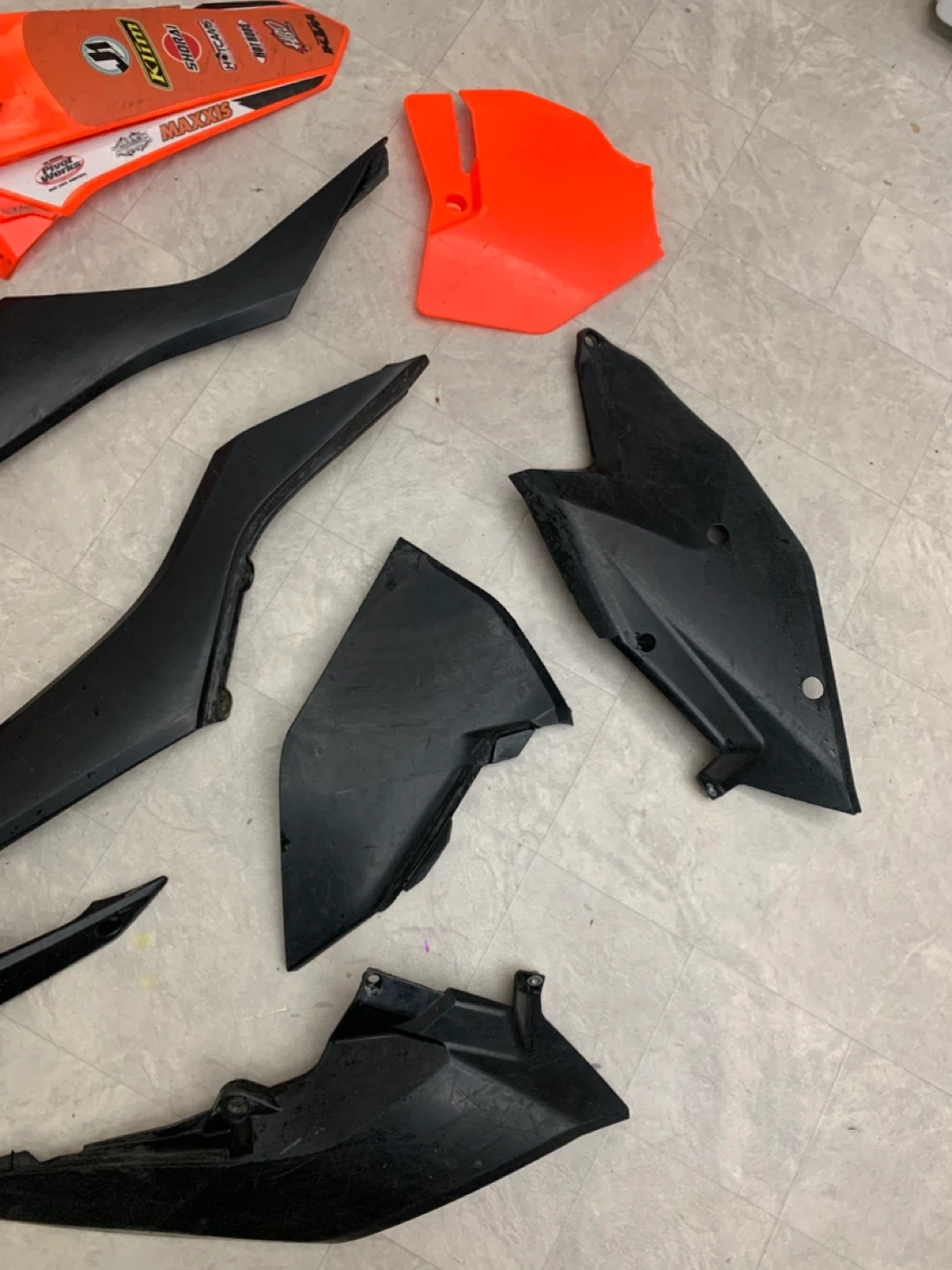 Selling a set of KTM dirt bike body fairings in orange and black. These are used but still have lots of life left! Perfect for replacing damaged parts or customizing your ride