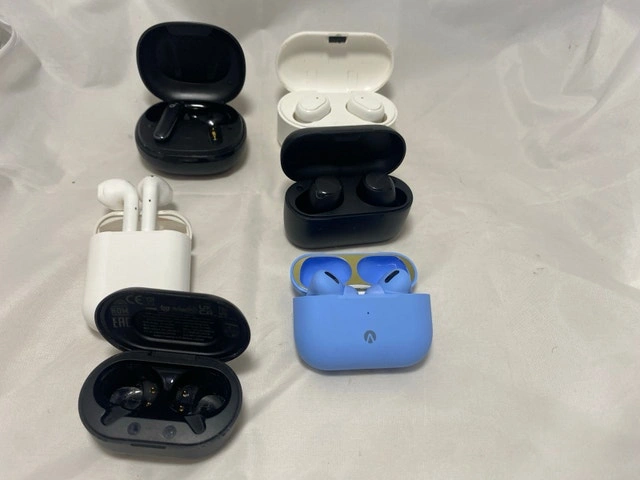 All untested with some missing. Explore the variety and convenience of wireless audio with this lot of six Bluetooth earbuds and headphones from multiple brands. Whether you're on the go, working out, or simply enjoying your favourite tunes, these earbuds offer the freedom and comfort of Bluetooth connectivity. Each pair is designed for ease of use and lasting enjoyment, featuring intuitive wireless technology that pairs seamlessly with your devices. The assortment includes earbuds in various colours to suit your style and mood, ensuring you find the perfect match for your personal accessories. With models tailored for different needs, from immersive sound for music lovers to clear calls for busy professionals, there's an ideal pair for everyone in this diverse collection. Enjoy the perks of wireless features without the hassle of tangled wires.