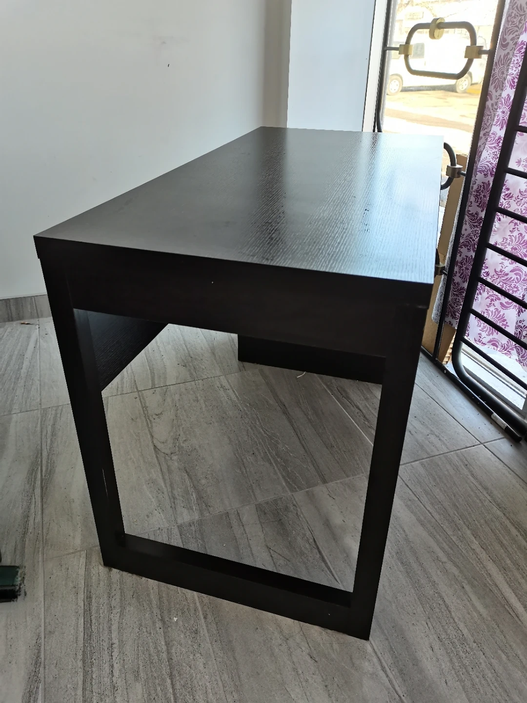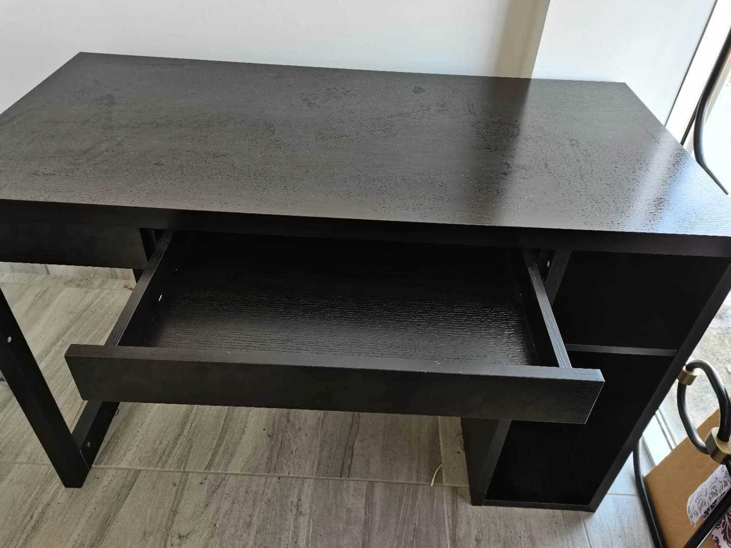 modern sleek writing desk, drawer shelf (47.5"x23.5"x30h)