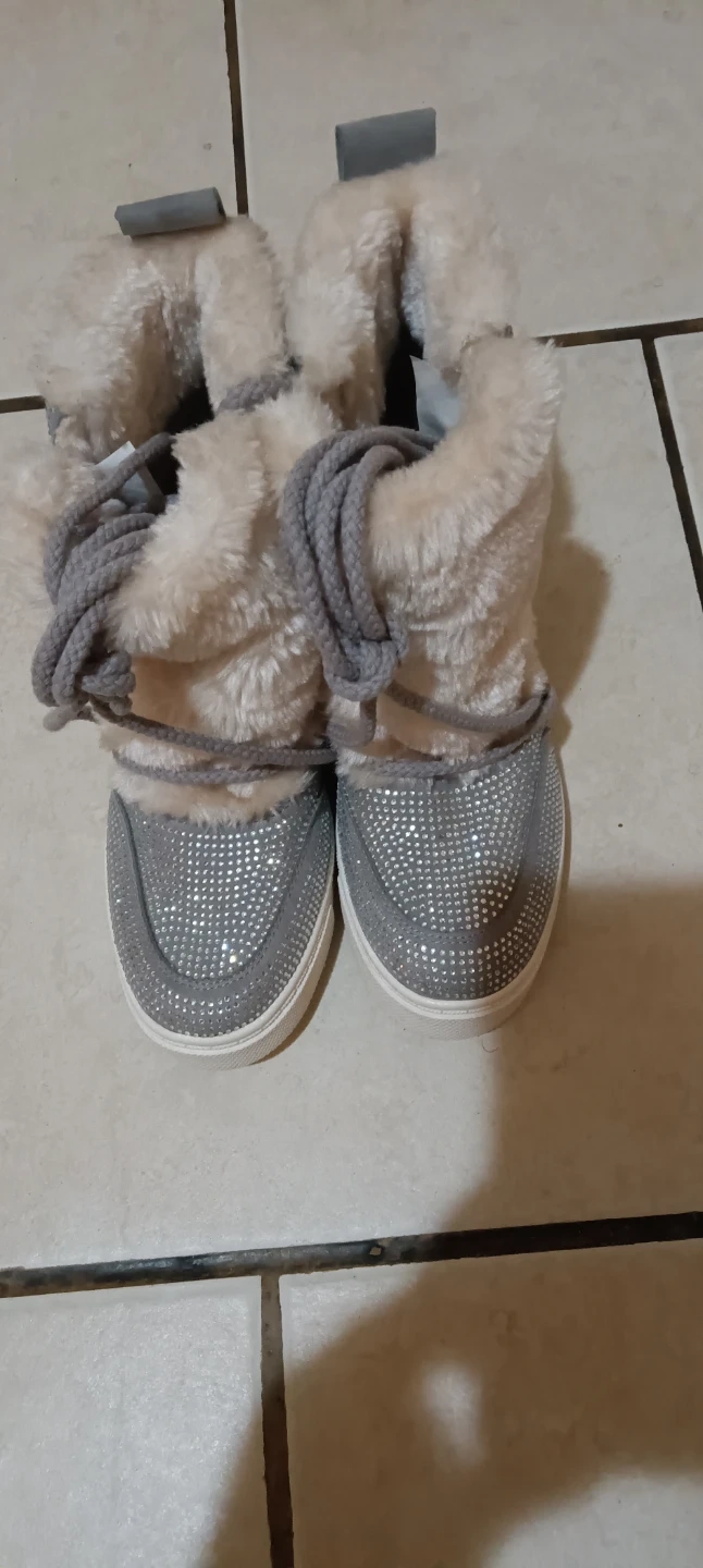 Cute silver wedge heel boots with faux fur lining! They have a lace-up design and are in great condition. Perfect for adding a little sparkle to your winter wardrobe!