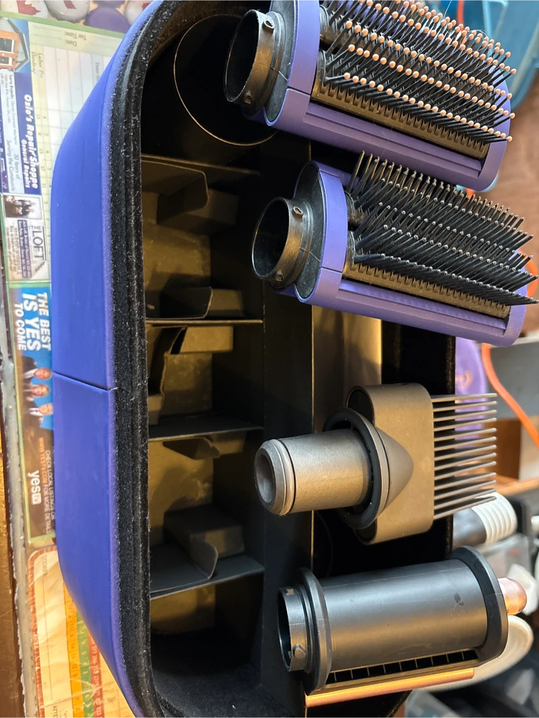Selling 4 Dyson air wrap attachments for different styling needs. Great for creating curls, waves, and smooth styles. Comes with the original case to keep everything organized.