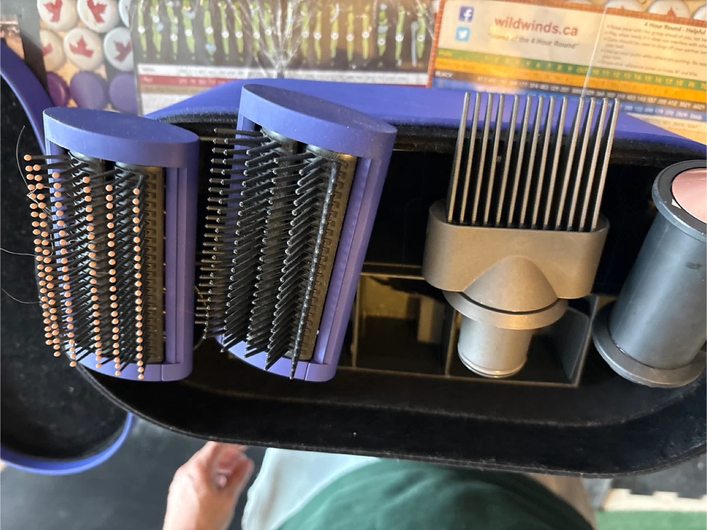 Selling 4 Dyson air wrap attachments for different styling needs. Great for creating curls, waves, and smooth styles. Comes with the original case to keep everything organized.