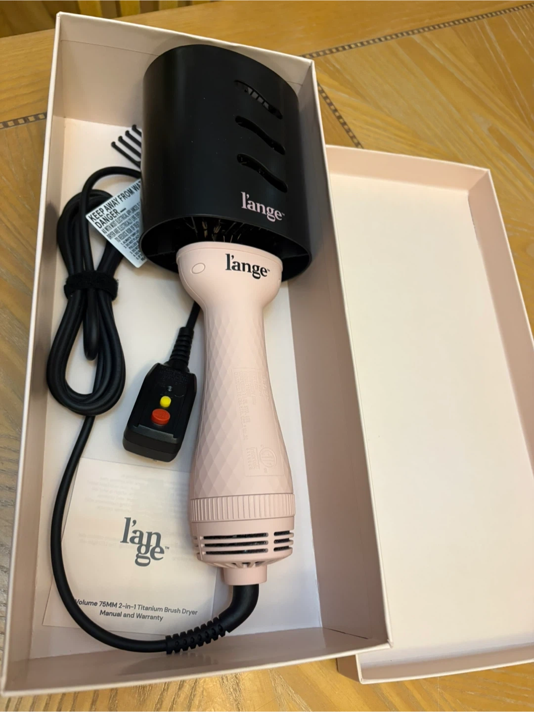 Selling a L'ange Le Volume 75MM 2-in-1 Titanium Brush Dryer! It's in NEW condition and comes with its original box and manual.