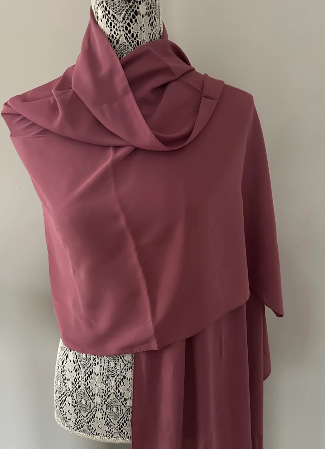 This beautiful dusty rose shawl is perfect for adding a touch of elegance to any outfit! The colour is a lovely muted pink, and the fabric has a nice drape.