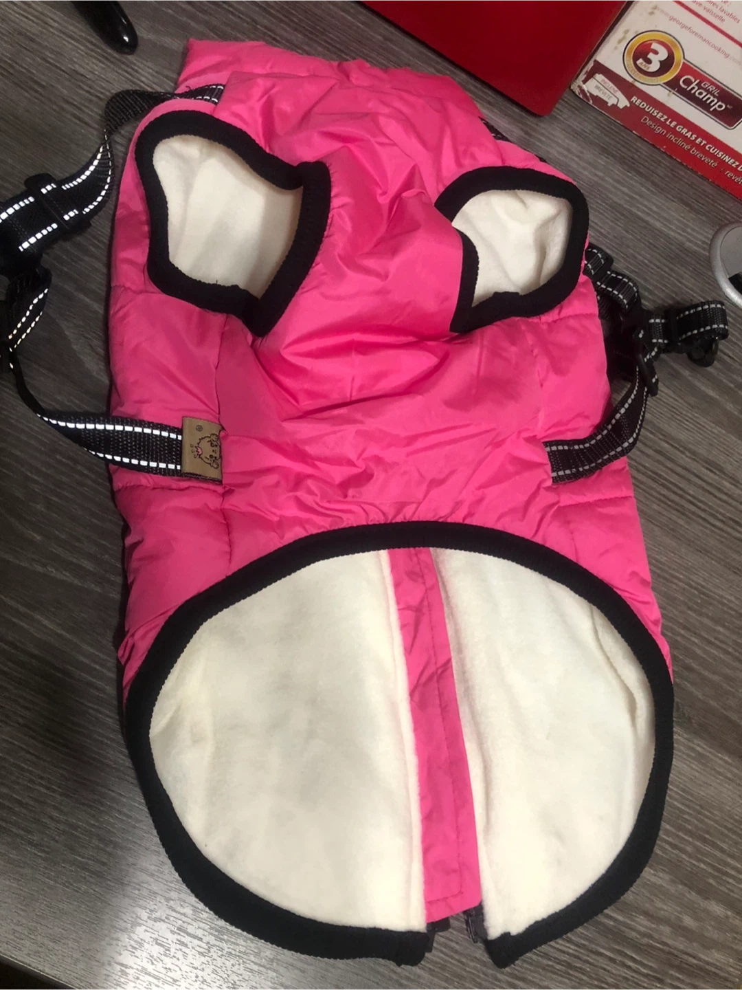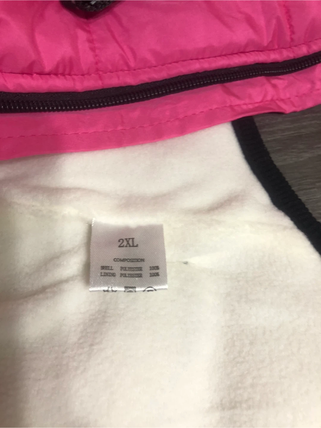 Pink Fashion Sports Dog Puffer Vest - Size 2XL Keep your furry friend warm and stylish with this pink Fashion Sports dog puffer vest! It's a size 2XL and made with a shell of 100% polyester, and a lining of 100% polyester as well. Perfect for those chilly Canadian walks!