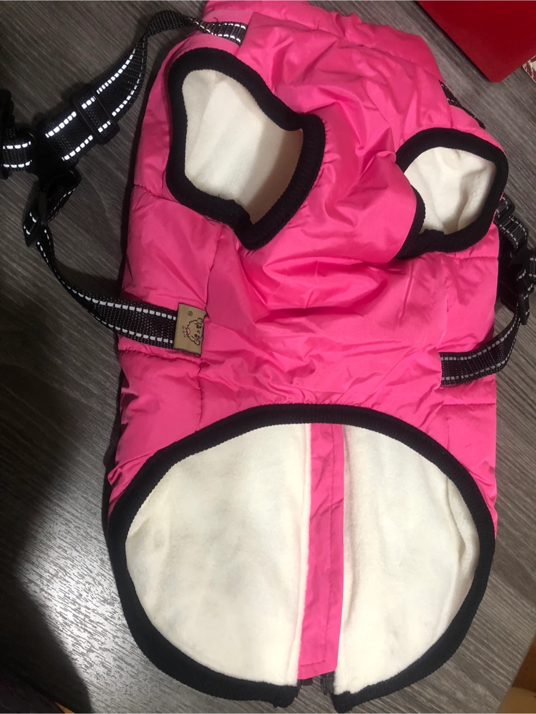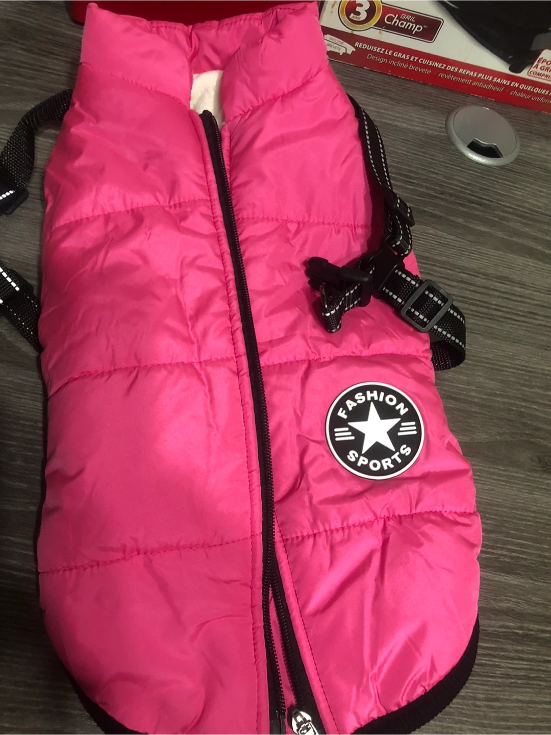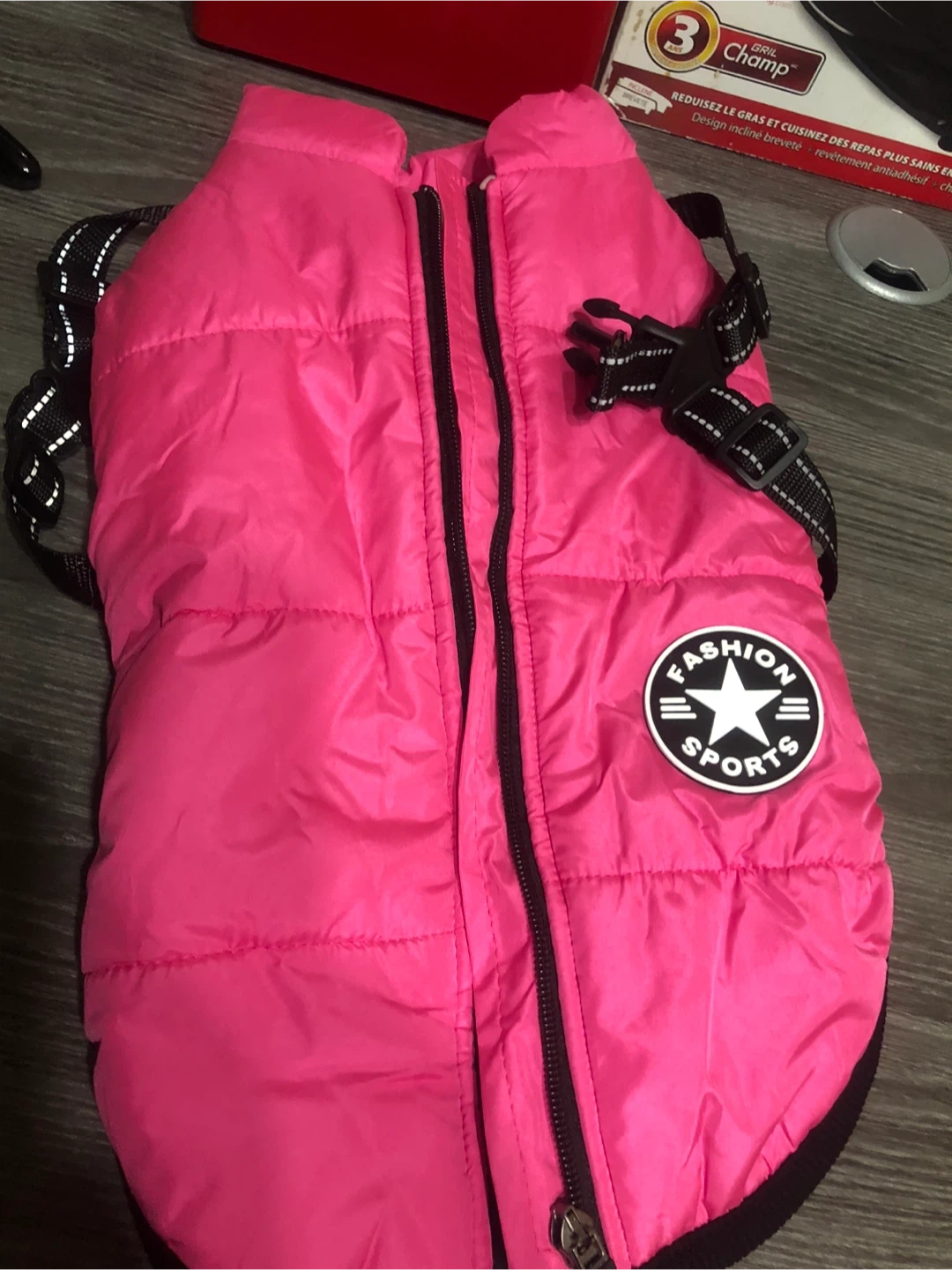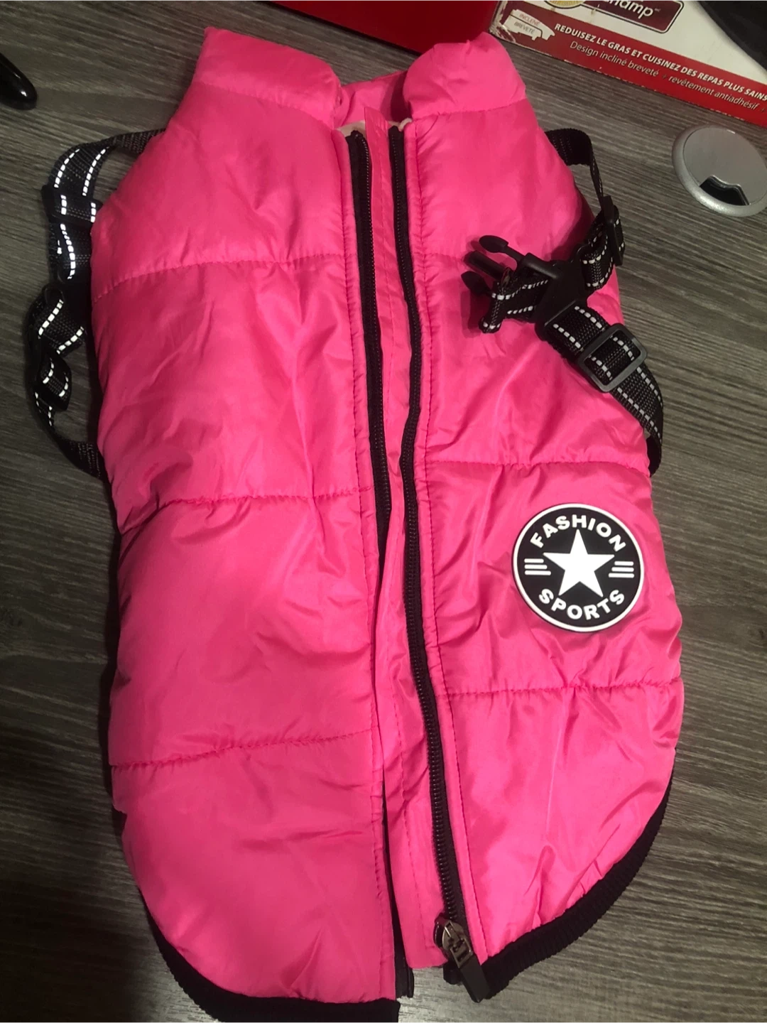 Pink Fashion Sports Dog Puffer Vest - Size 2XL Keep your furry friend warm and stylish with this pink Fashion Sports dog puffer vest! It's a size 2XL and made with a shell of 100% polyester, and a lining of 100% polyester as well. Perfect for those chilly Canadian walks!