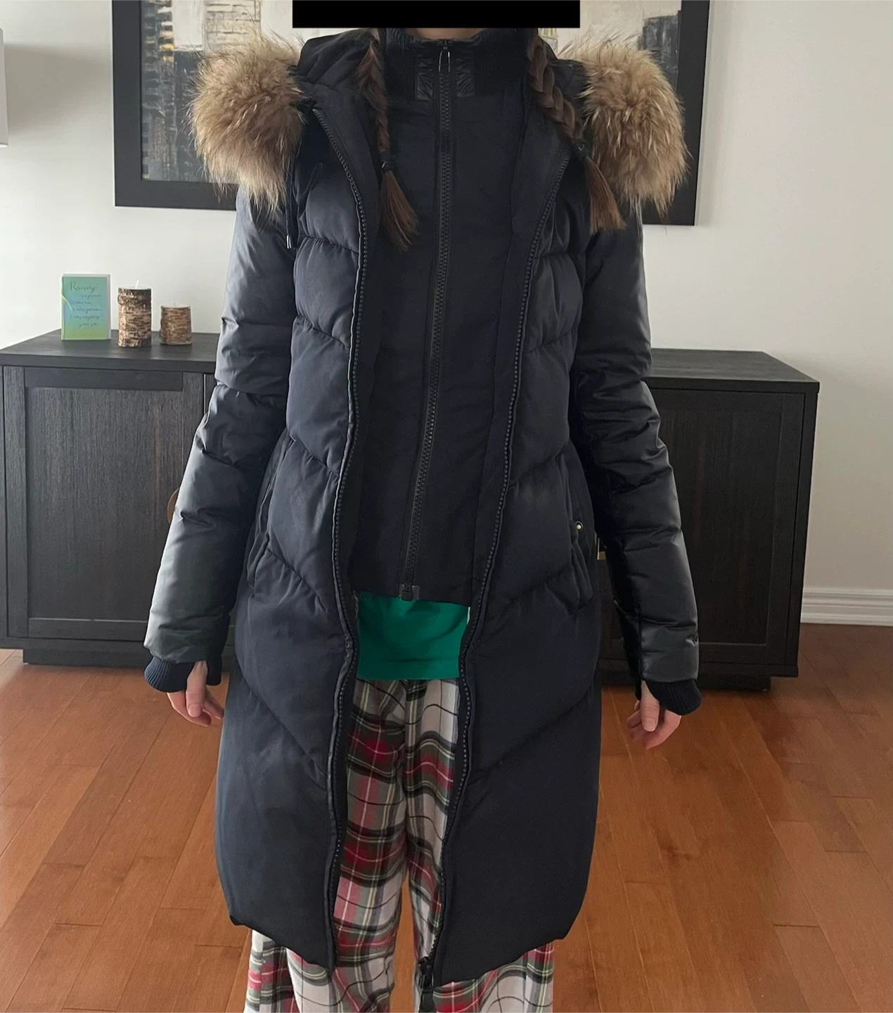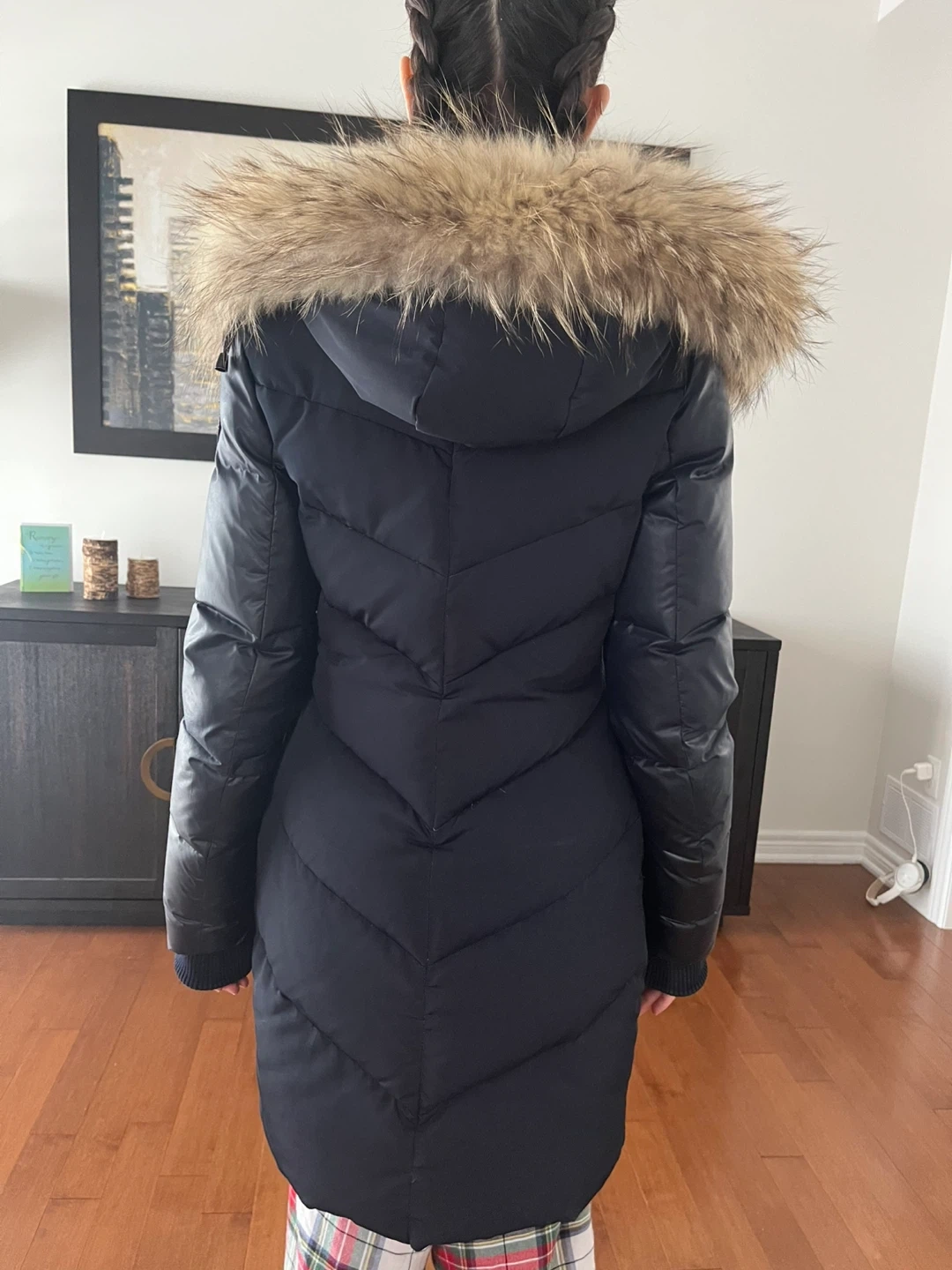 Selling a Rudsak down winter coat in navy blue. The coat features a stylish design with a fur-trimmed hood to keep you warm and cozy
