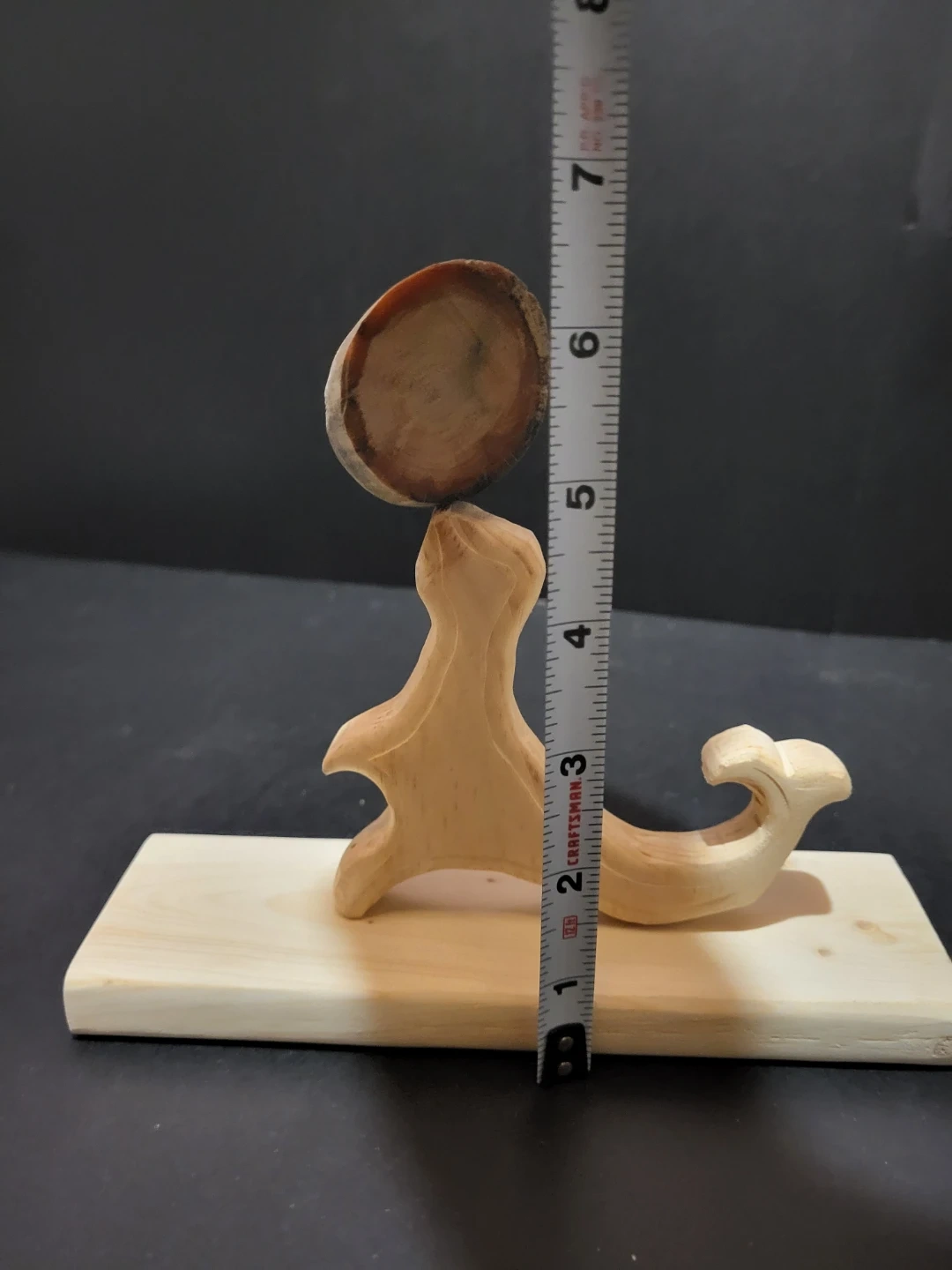 Selling a unique hand-carved wood sculpture. It measures approximately 7 inches in height and 6 inches in length. A beautiful piece for any collection
