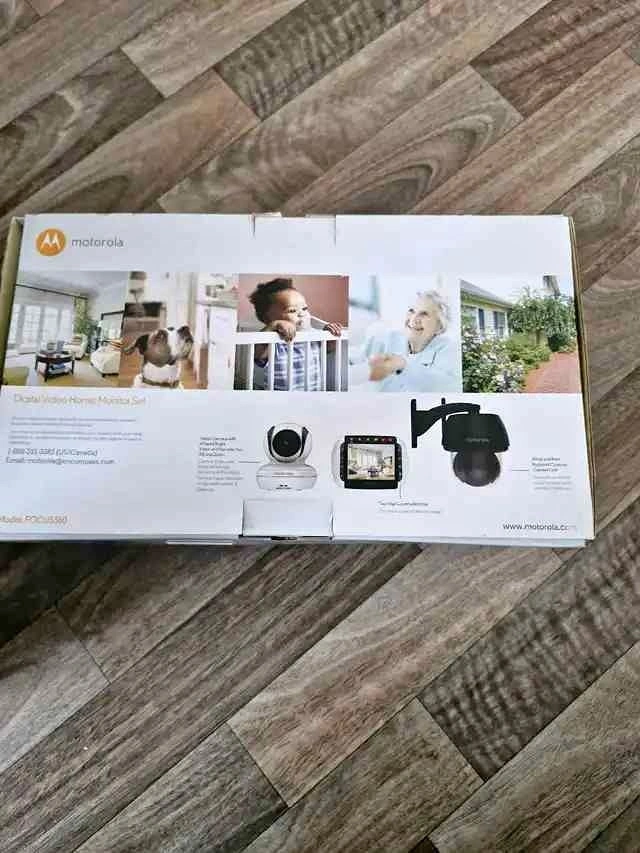 Motorola FOCUS360 video monitor and camera set. Open box but never used. 3.5" screen, indoor pan/tilt camera, outdoor camera. Great for home security or baby monitoring.