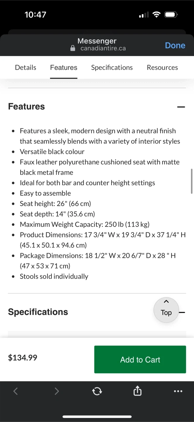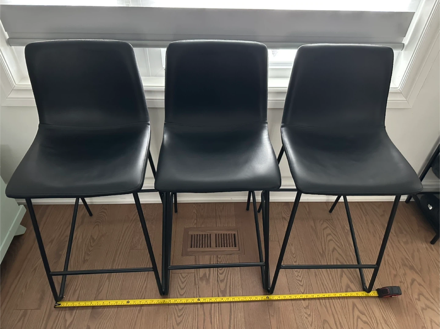 The seat height is 26" (66 cm), and the seat depth is 14" (35.6 cm). Originally bought for $134.99 each