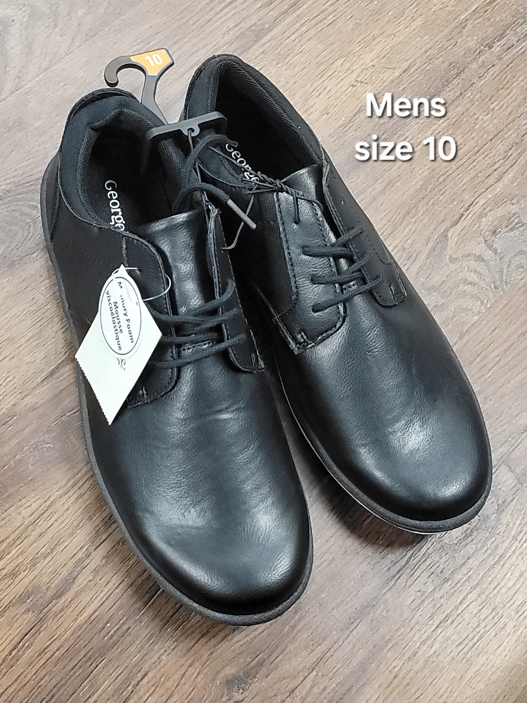 Selling a pair of George men's dress shoes in black. They are size 10. These shoes feature a memory foam insole for extra comfort