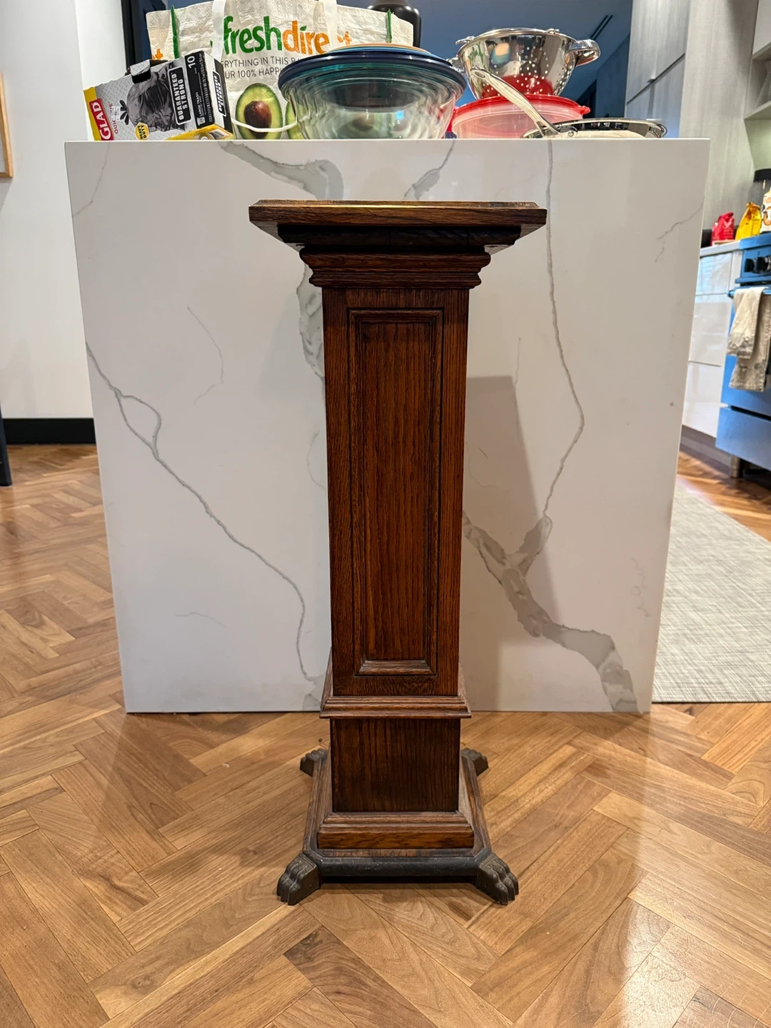 Buy & SellAntique Pedestal with Claw FeetAntique Pedestal with Claw Feet$50Antique wooden pedestal with claw feet. It's a great way to display plants or other decorative items! 30.75”x10.5”x10.5”ConditionGoodDimensions10.5x10.5x30.75WHERE TO MEETBed-StuyView MapSELLERverifiedBarryBedford-Stuyvesant1487 reviews0 chats·2 favorites·29 viewsSEND CHAT TO SELLERHi Barry! I’m interested in your listing.Hi Barry! I’m interested in your listing.Get the Karrot app to chatSign In to chat