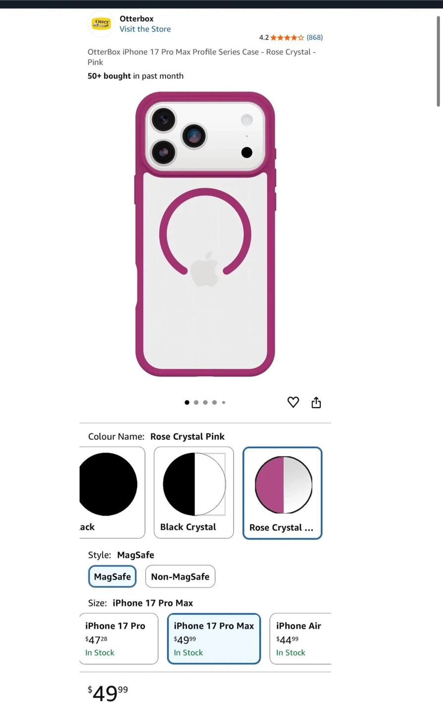 Selling a brand new Otterbox Profile Series case for the iPhone 17 Pro Max in Rose Crystal Pink! This case offers military-grade drop protection while maintaining a slim profile.