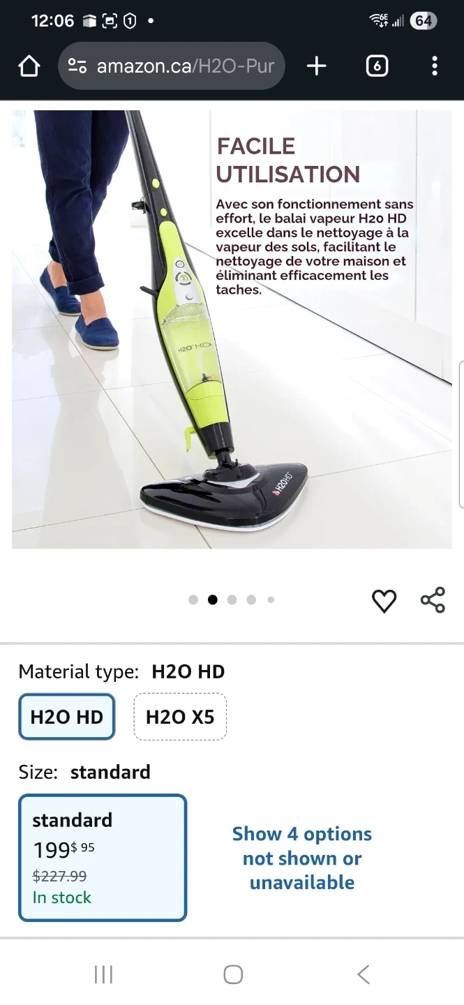 Selling an H2O HD steam cleaner in standard size. It's great for cleaning carpets, wood, clothes, and windows. It's compact, portable, and foldable for easy storage.