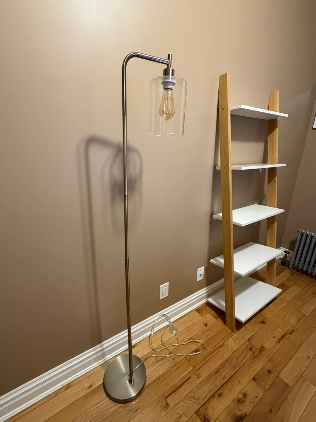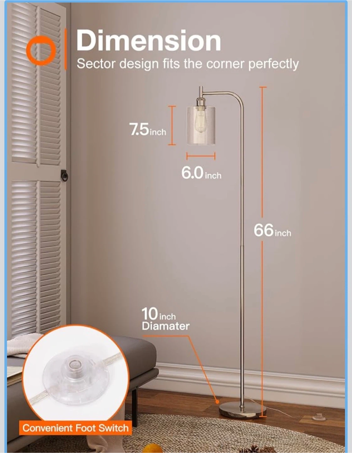 Add a touch of modern elegance to your space with this sleek bronze floor lamp! It features a clear glass shade and a convenient foot switch.
