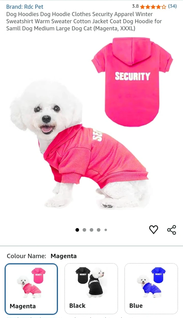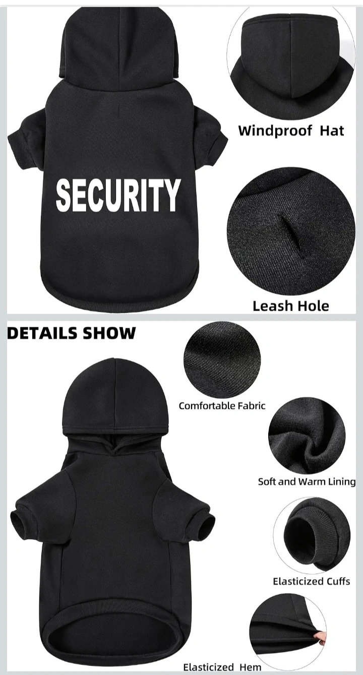 Keep your furry friend cozy with this Trudz PET dog hoodie! It's a size medium and features a 'SECURITY' design on the back. Perfect for keeping your dog warm during the cooler months