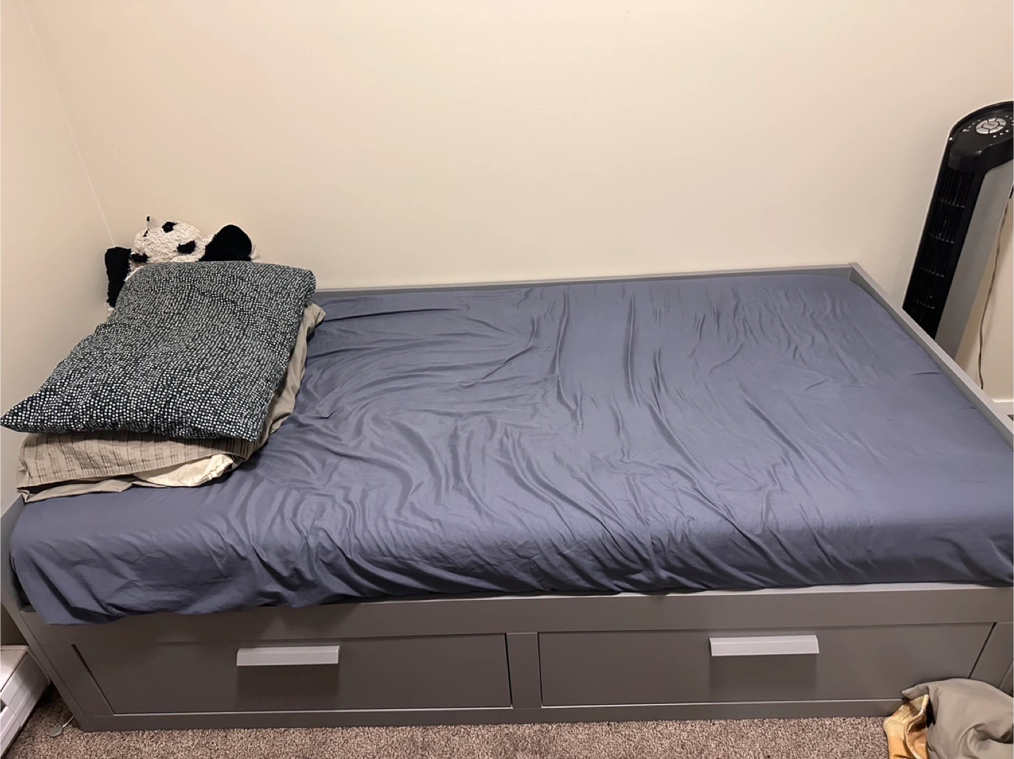 Selling a bed frame that comes with built-in drawers for extra storage! It's a great space-saving solution for smaller rooms or anyone who needs a bit more organization. The bed frame is in good condition and ready for a new home. IKEA day bed