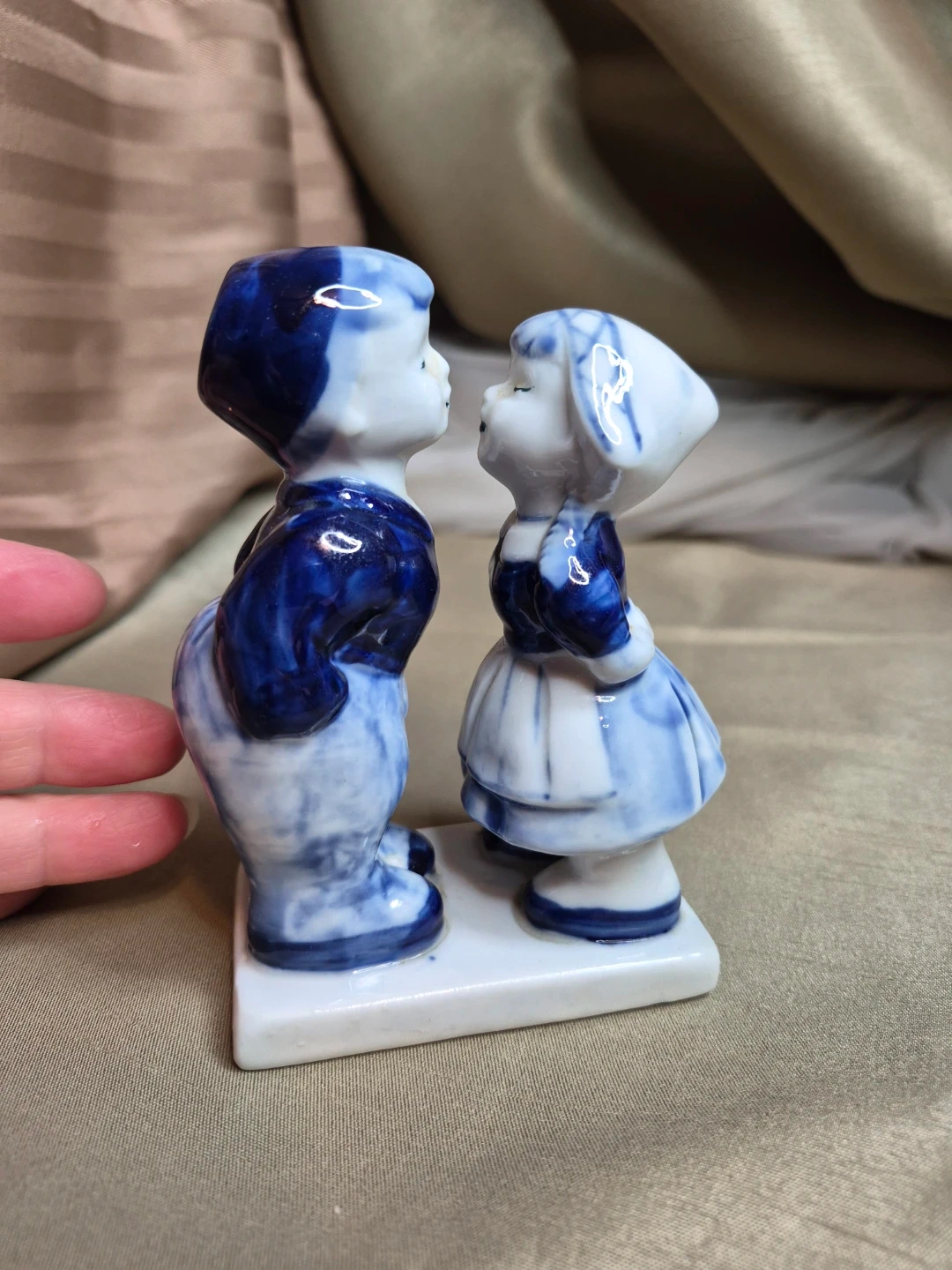 So Cute 5" Holland Blue Delft Porcelain Kissing Kids Figurine