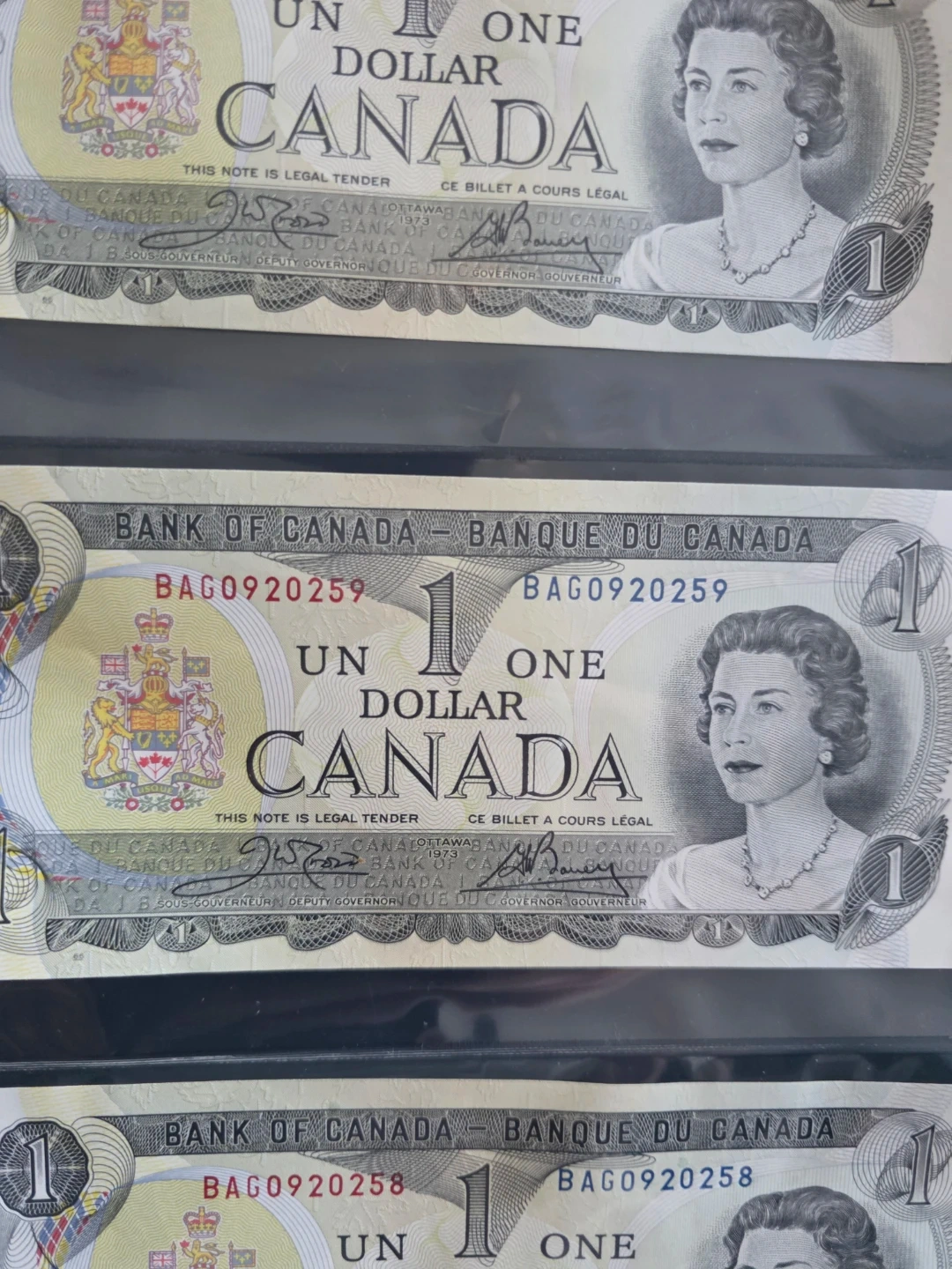 Selling Canadian one dollar bills from the Bank of Canada. It features Queen Elizabeth II. A great piece of Canadian history!