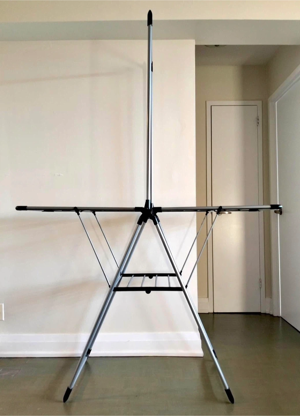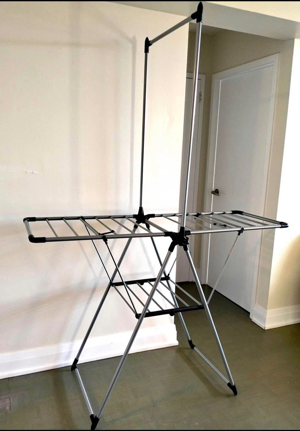 This folding clothes drying rack is perfect for small spaces! It's lightweight and easy to store when not in use. Great for air-drying clothes indoors or outdoors. Get yours today!