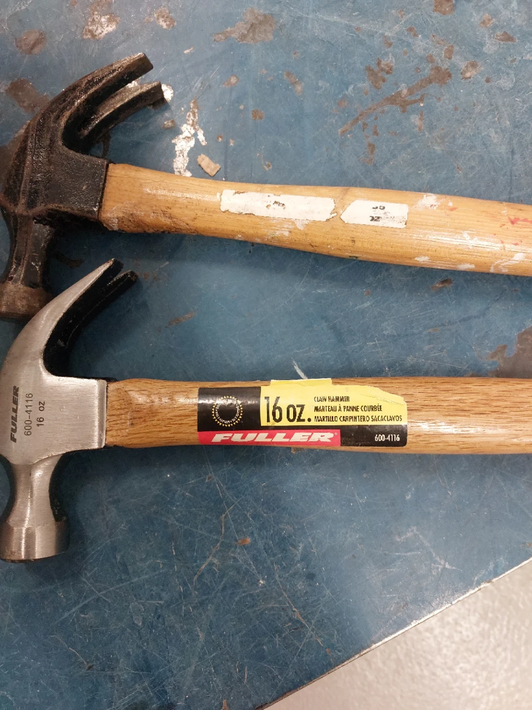 Selling a set of two claw hammers. One is a Fuller 16oz hammer in good condition, and the other is a used claw hammer of similar size. Perfect for your DIY projects or toolbox!