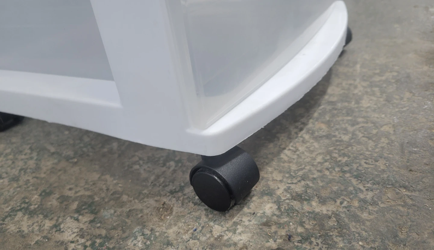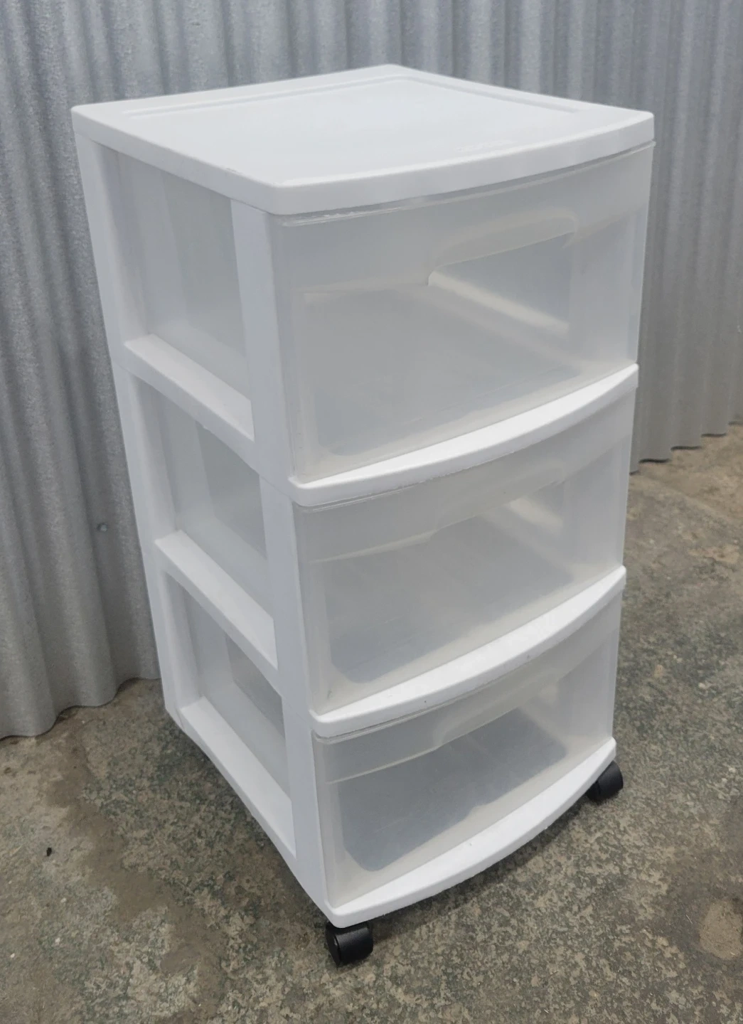 I'm selling a white 3-drawer rolling storage cart. It's perfect for organizing any room in your home. The cart has three spacious drawers and is on wheels for easy mobility. Great for extra storage!