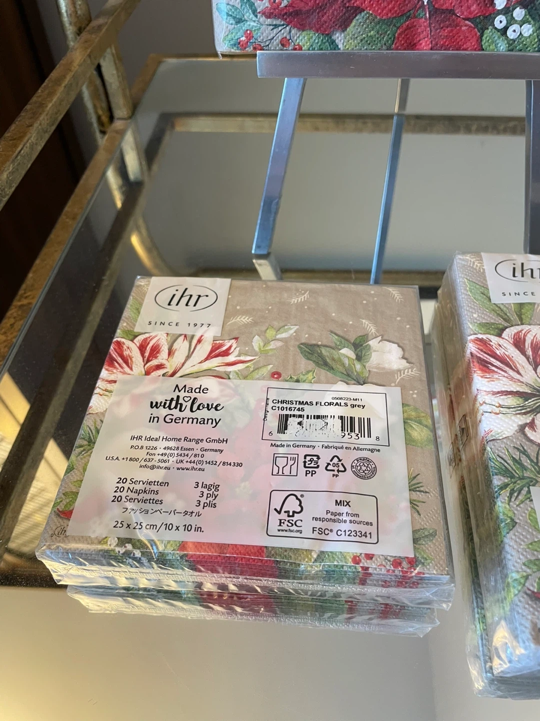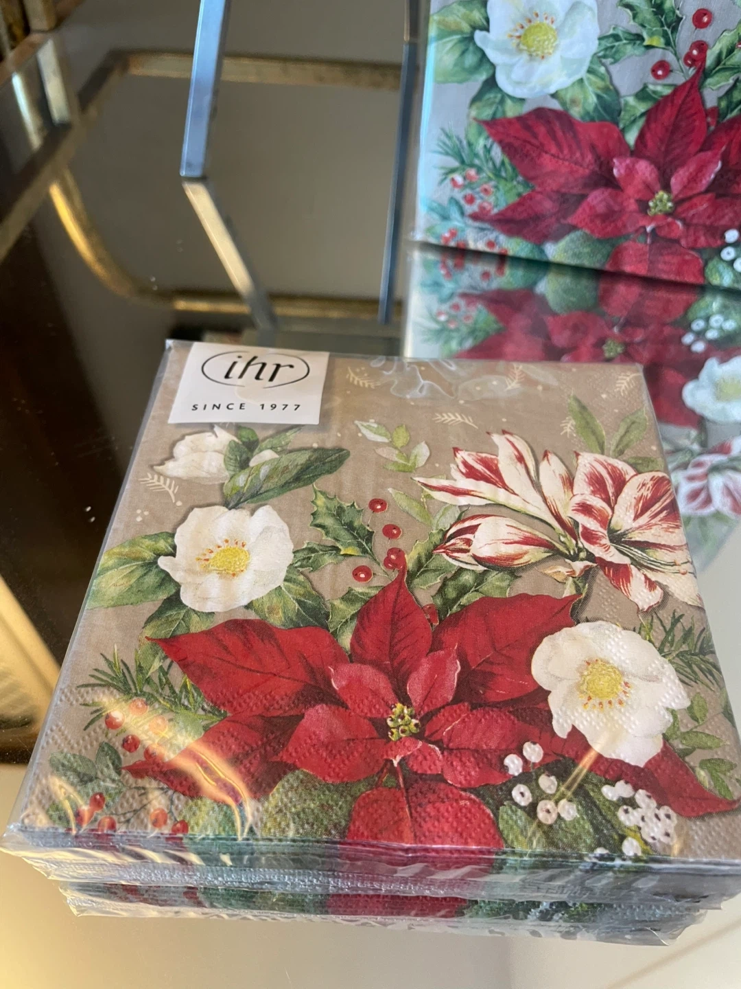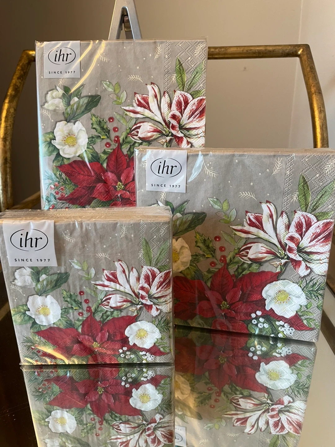 Selling a bundle of 3 packs of poinsettia paper napkins .