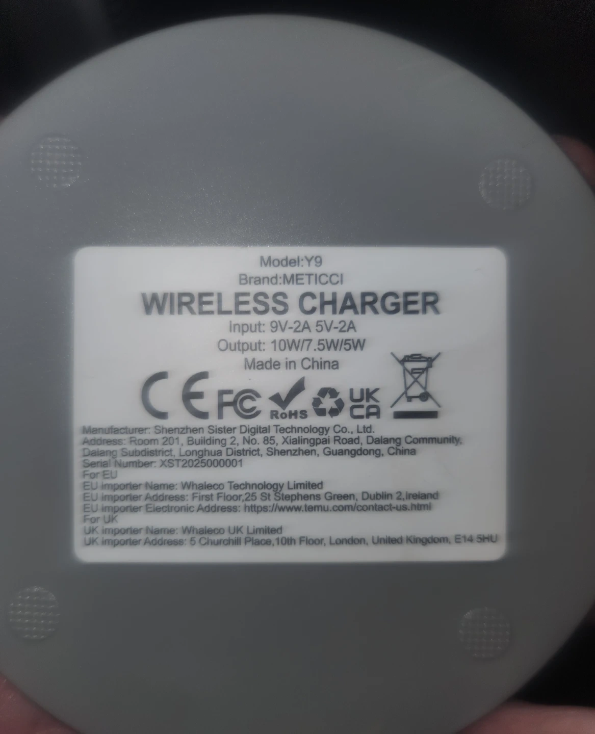 Selling a METICCI Y9 wireless charger. It's a fast charger with an input of 9V-2A 5V-2A and an output of 10W/7.5W/5W. Pick up only unless near intersection of Oxford and Gammage Street.