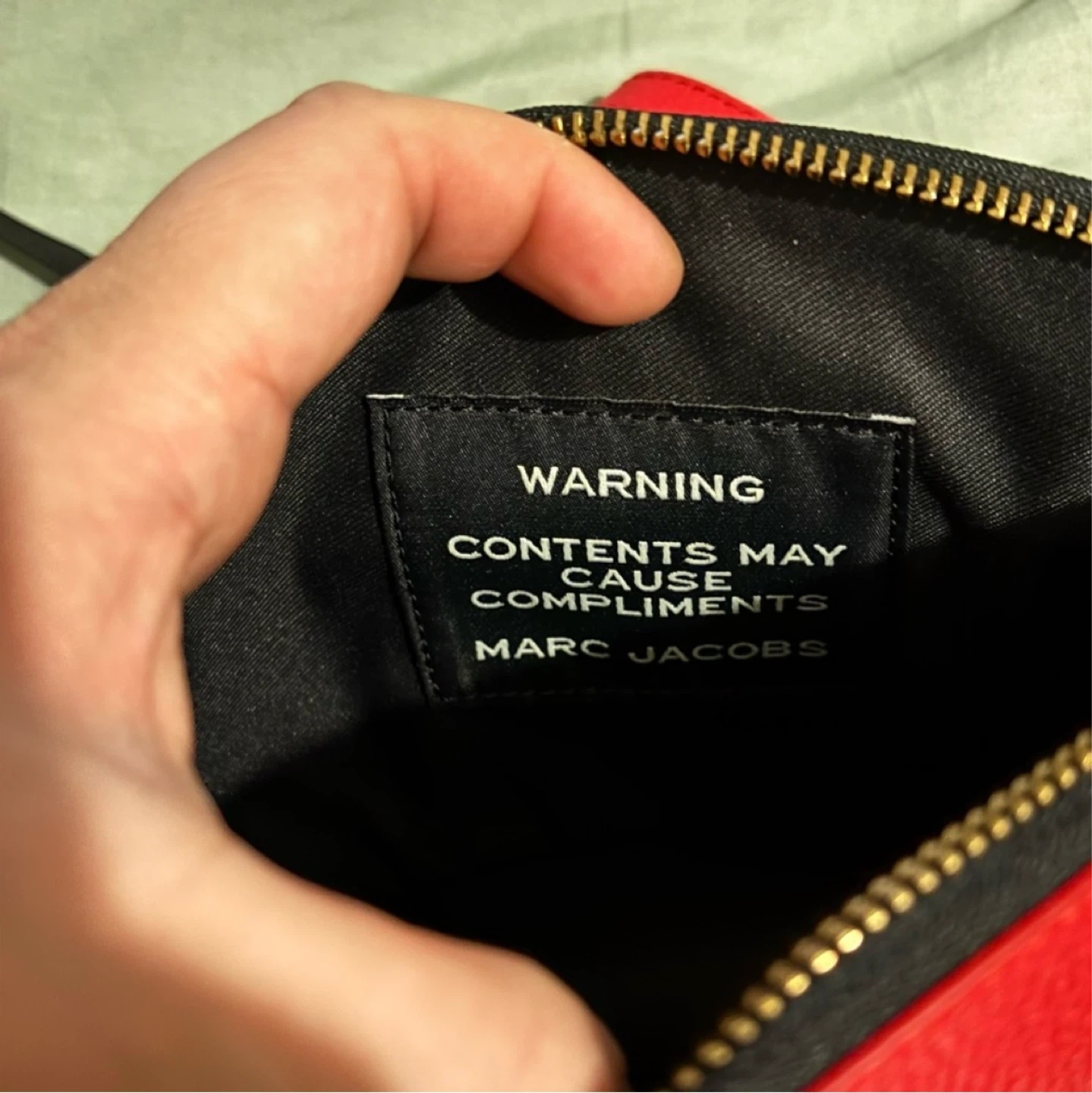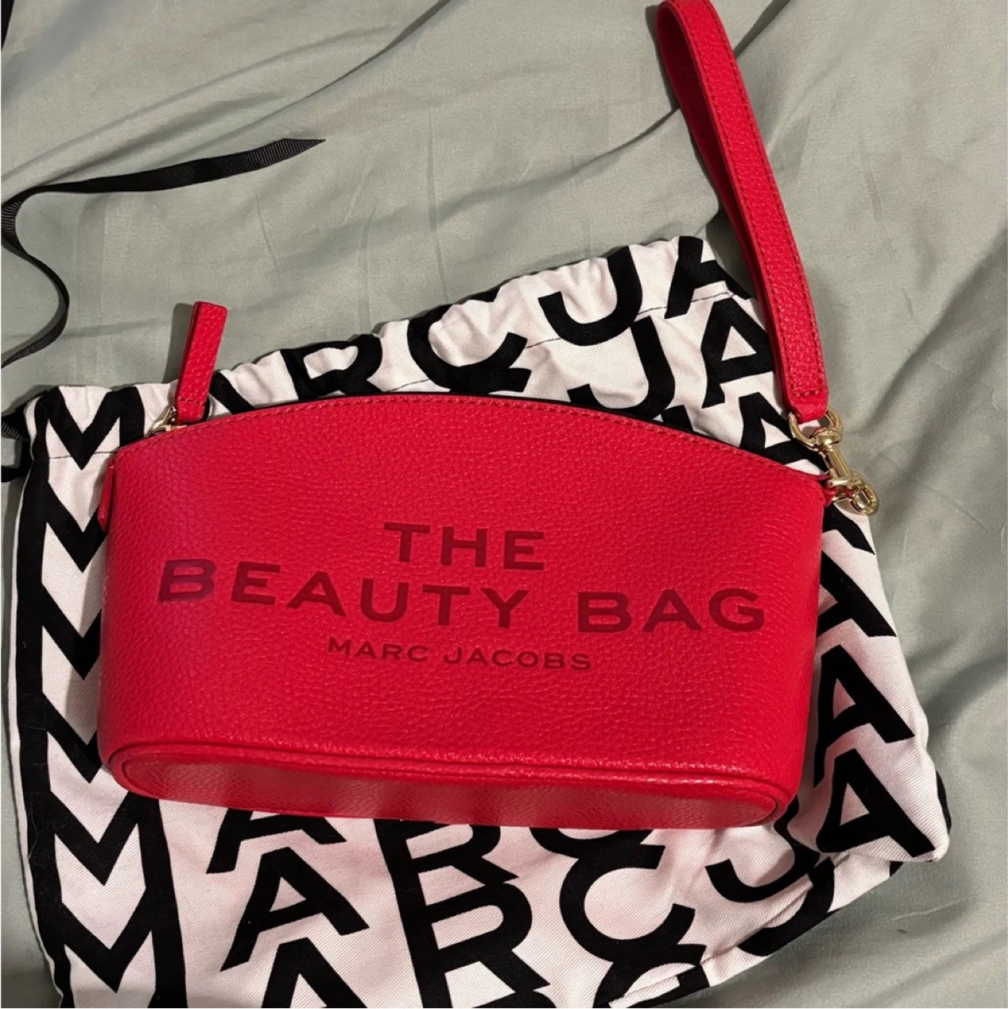 Selling a red Marc Jacobs "The Beauty Bag". It's never been used and comes with its original dust bag! The bag has a zipper closure and a wrist strap. The interior is lined with black fabric.