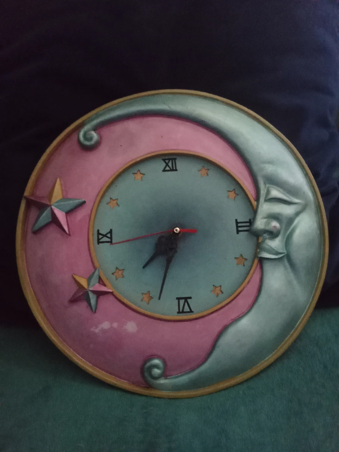 Cute moon and stars themed wall clock, perfect for a kid's room or anyone who loves celestial decor! It's in great shape and ready to brighten up your space