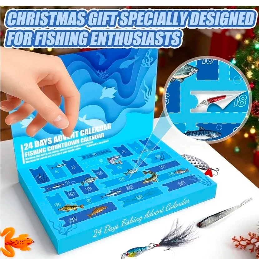 Get ready for the holidays with this fishing advent calendar! It includes 24 days of fishing lures to make the countdown to Christmas even more exciting. The box is included, so it's perfect for gifting to a fishing enthusiast