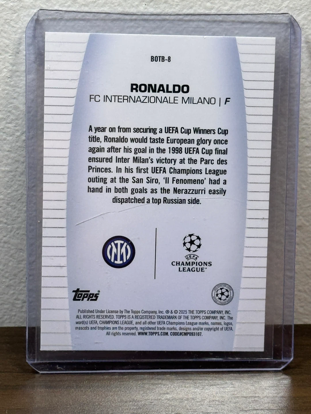 Selling a Topps trading card featuring Ronaldo, titled 'Best of the Best'. The card showcases Ronaldo in his FC Internazionale Milano kit. A great addition for any soccer fan or card collector!