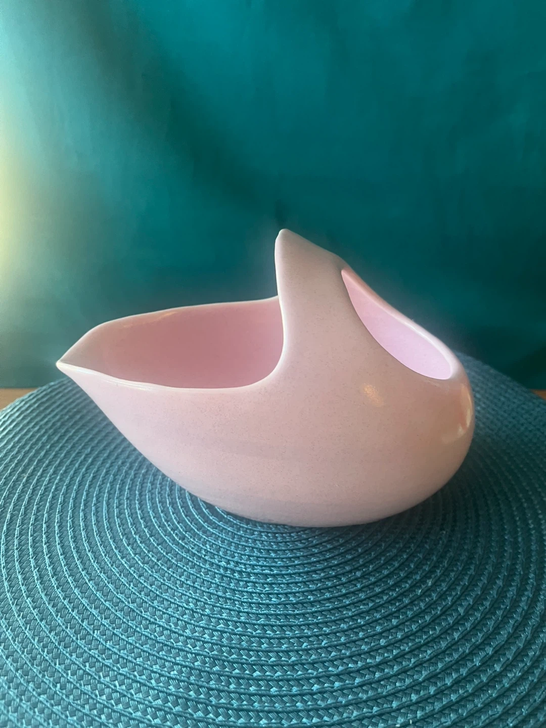 This is a cute pink ceramic basket!