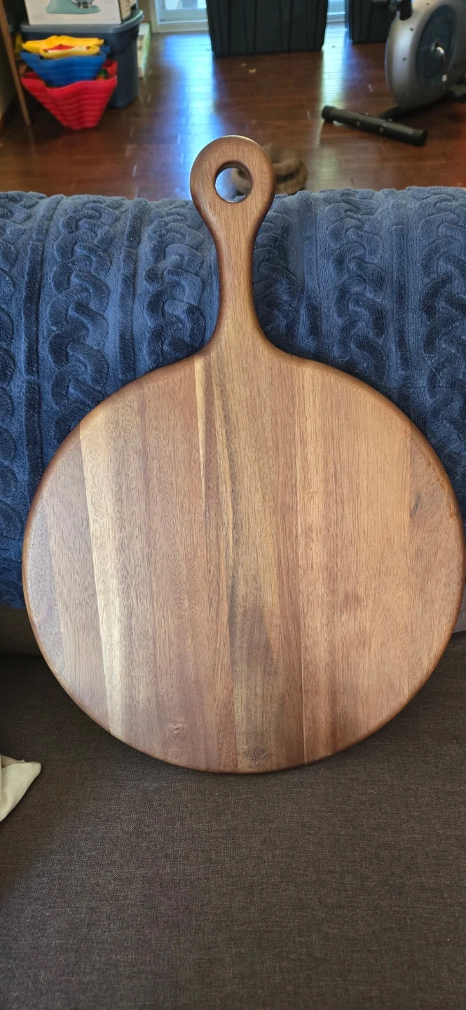 Selling a lovely acacia wood paddle serving board. It's in great shape and ready for your next charcuterie night or pizza party! The handle makes it easy to carry and serve your favourite snacks and appetizers.
