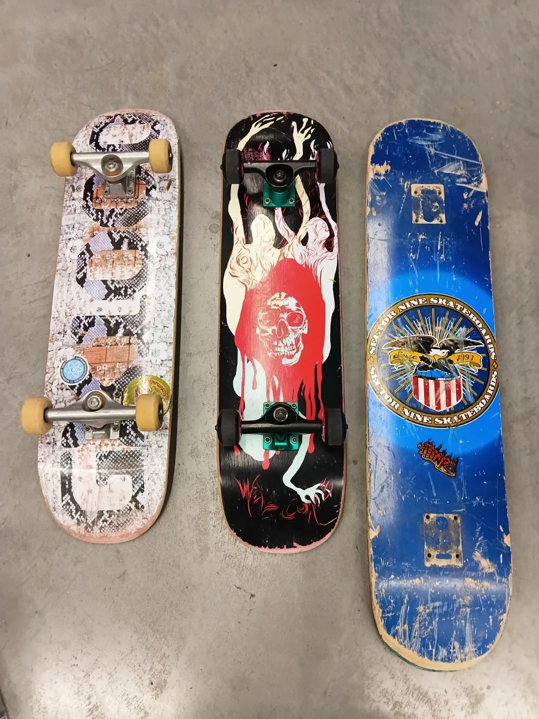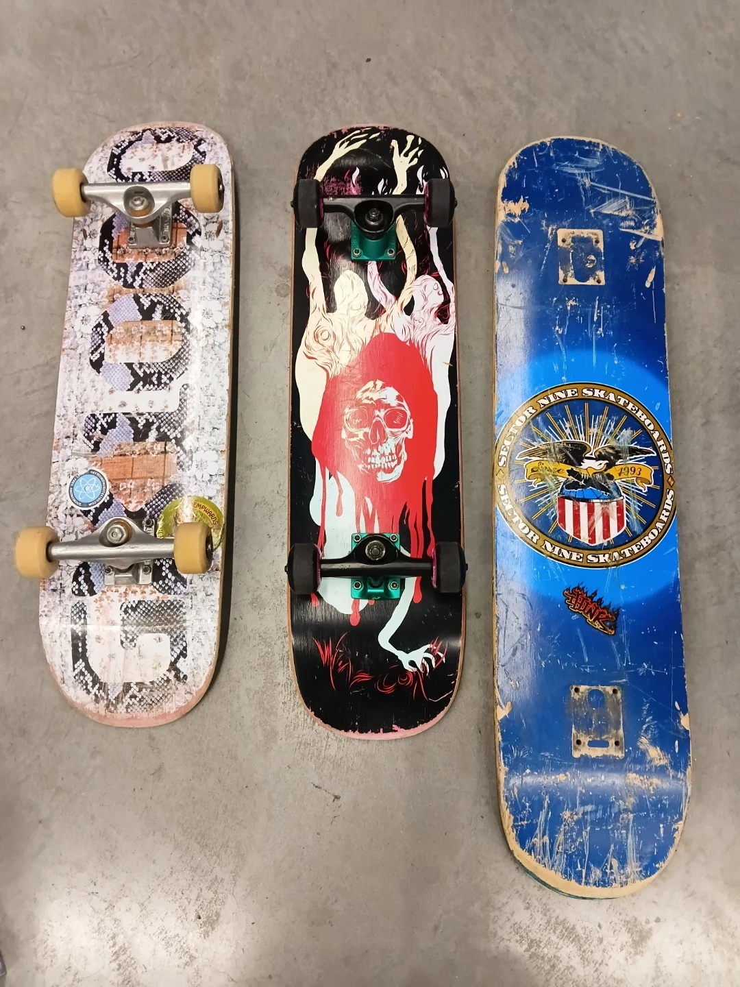 Selling a set of three used Sector 9 skateboards. They show signs of wear but are ready to ride. Great for beginners or experienced skaters looking for a variety of boards