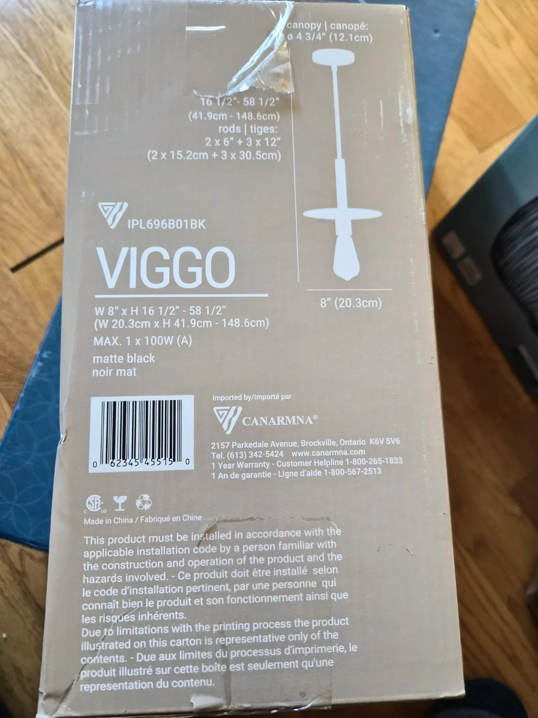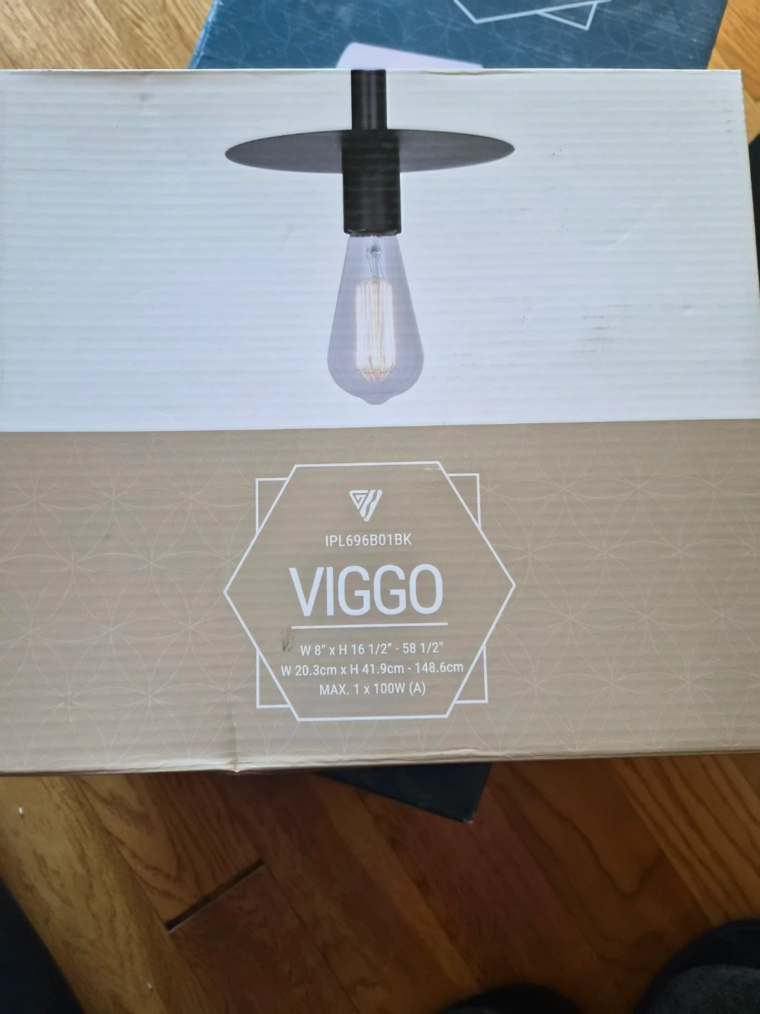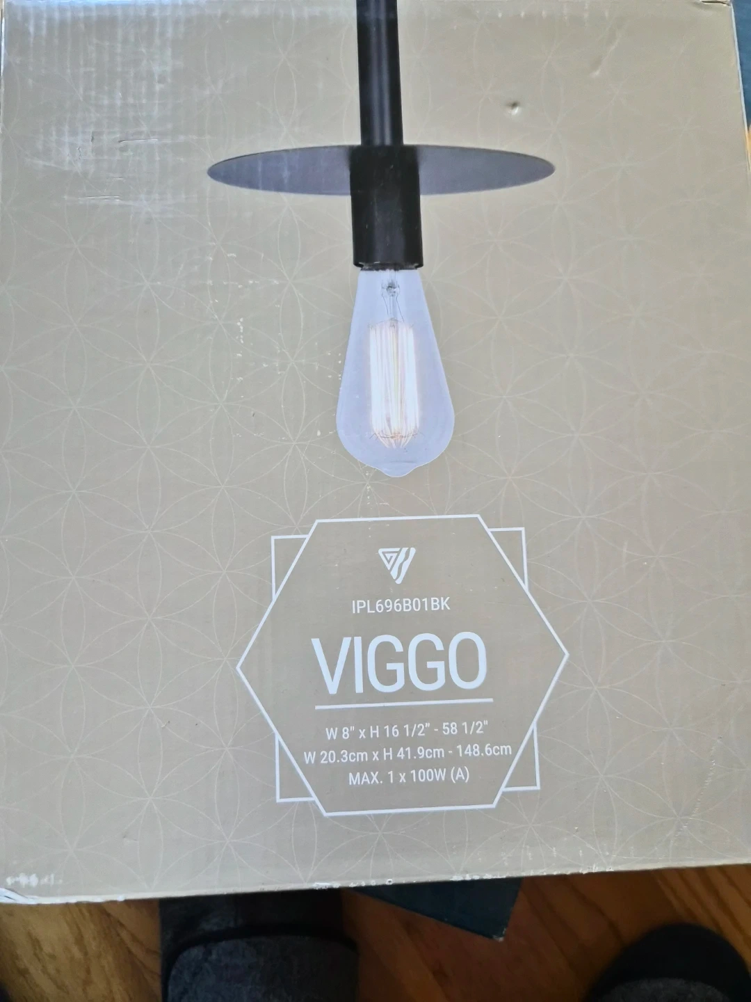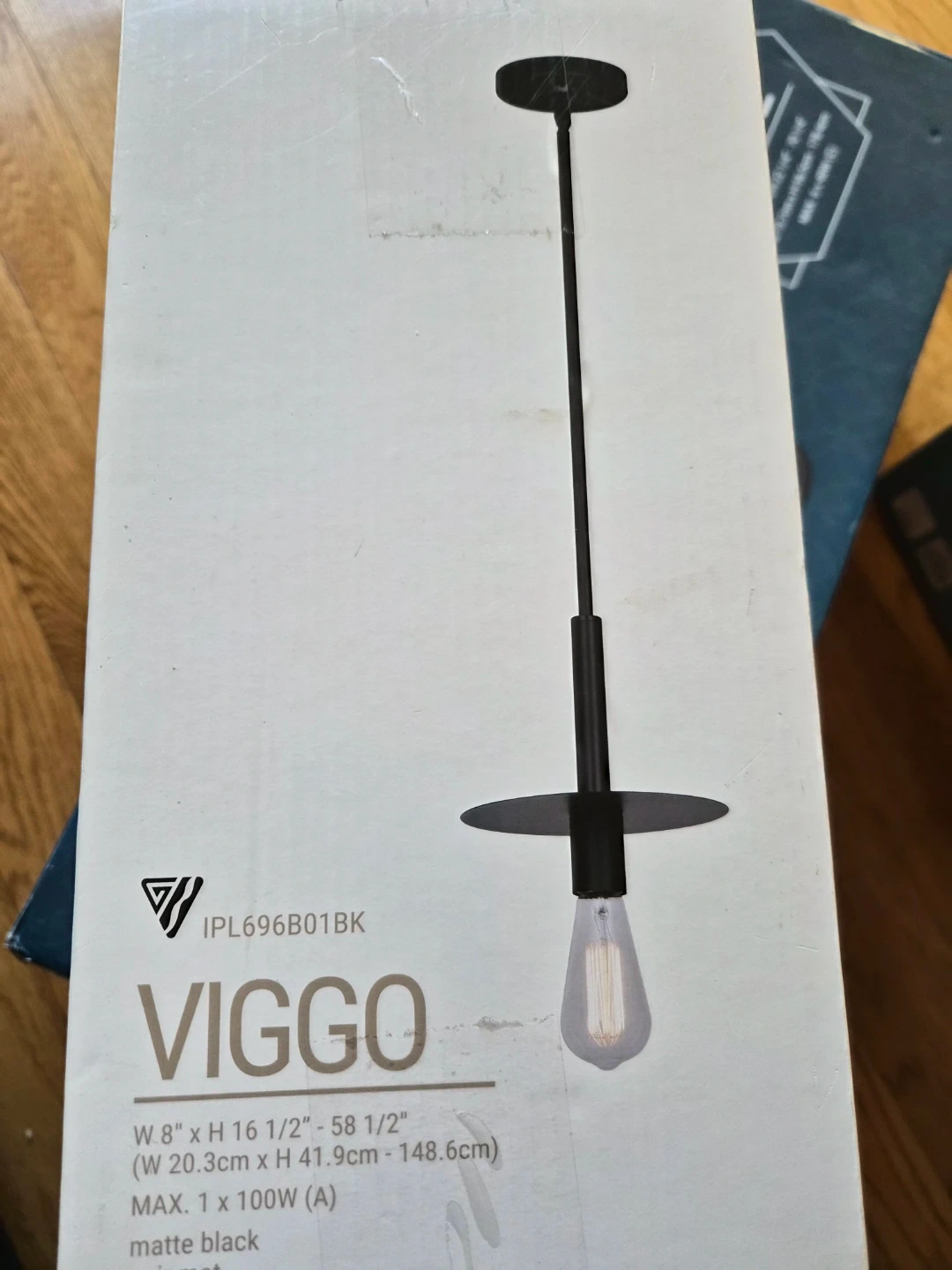 Selling a Viggo pendant light in matte black! It's brand new in the box. The dimensions are W 8" x H 16 1/2" - 58 1/2" (W 20.3cm x H 41.9cm - 148.6cm). Max 1 x 100W (A)