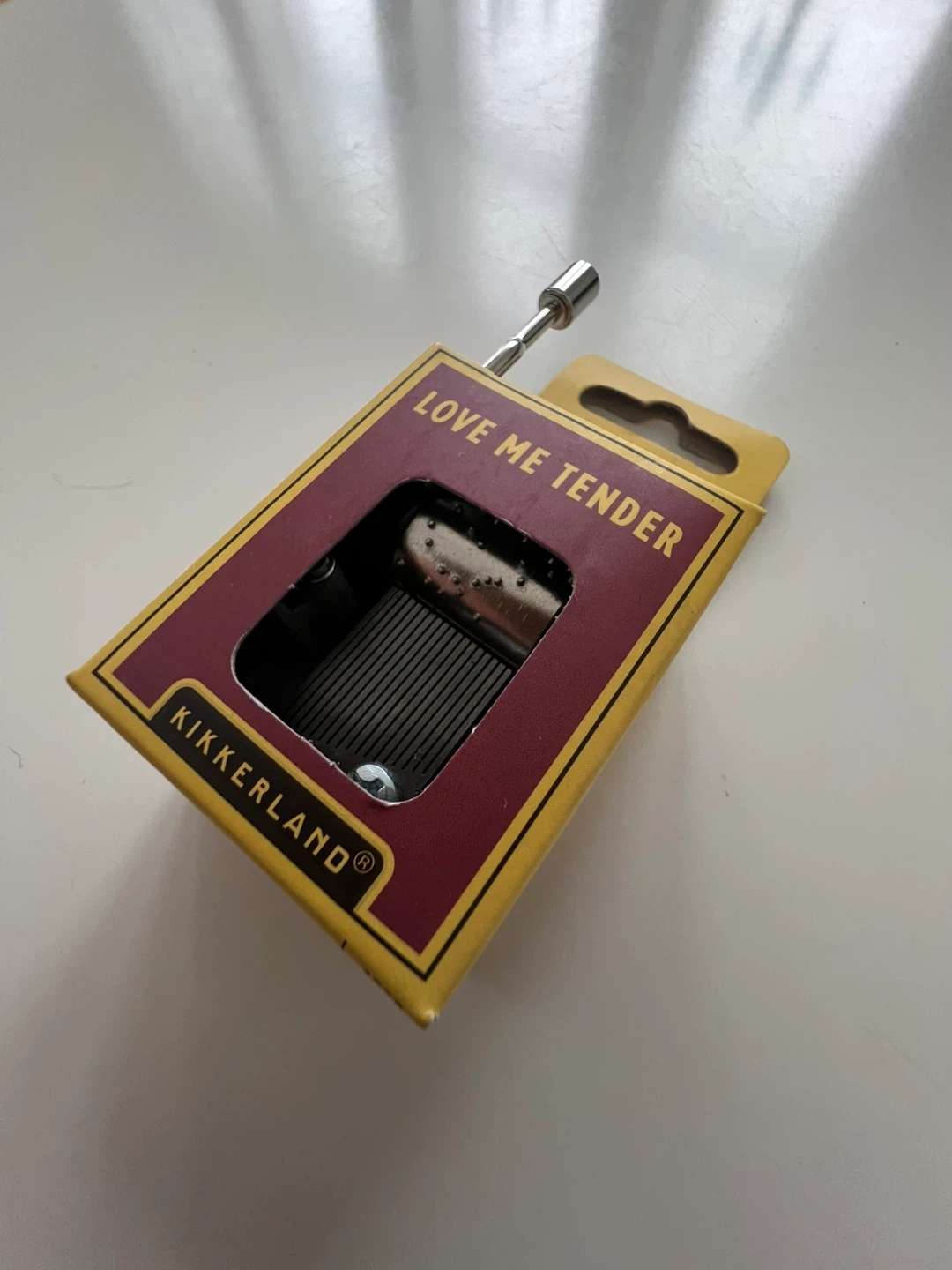 Selling a small Kikkerland 'Love Me Tender' music box. New and in original box.