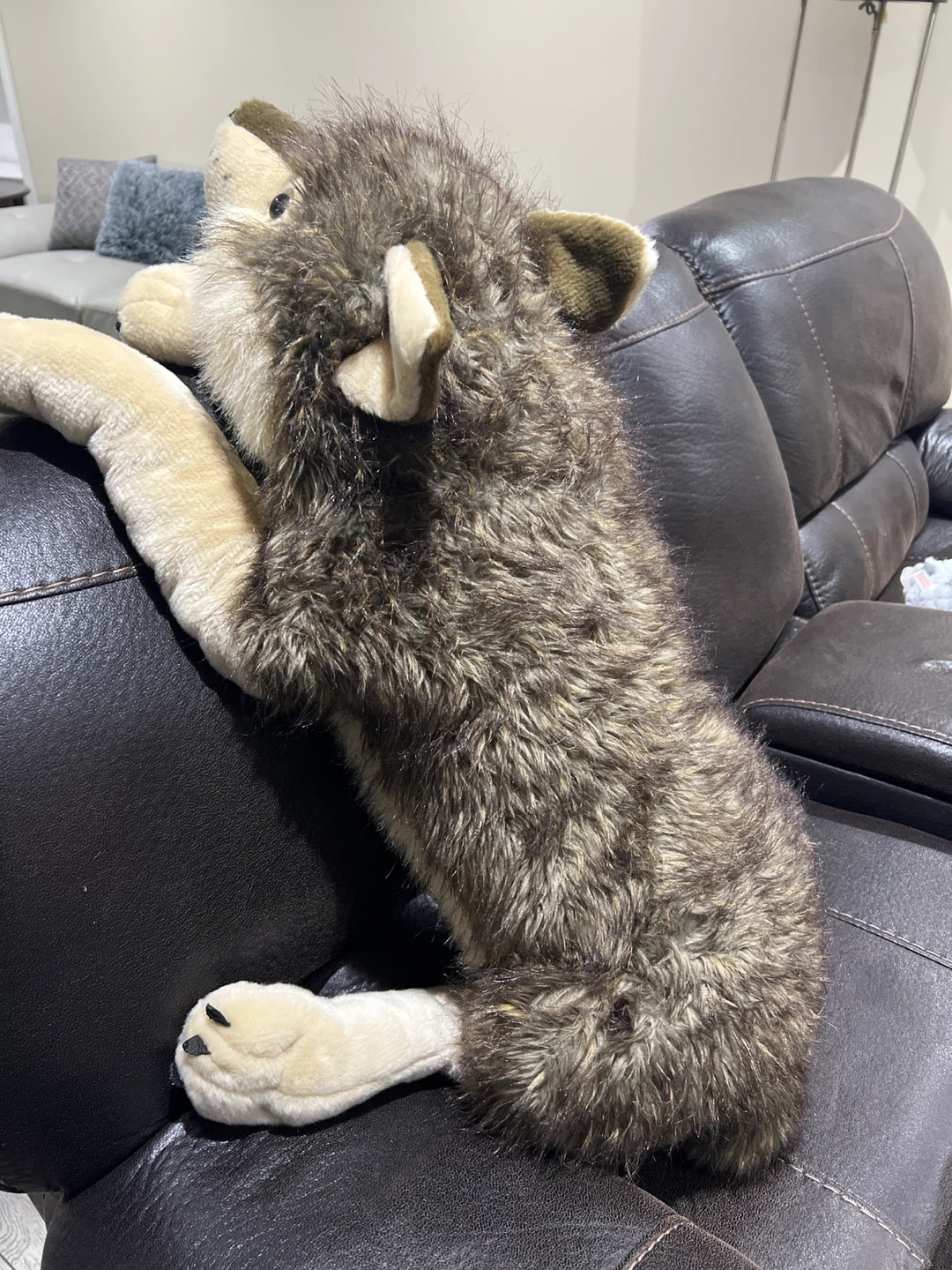 Selling a cuddly wolf plush toy! It's in great condition and ready for a new home with someone who loves stuffed animals. It has a fluffy tail and soft fur, perfect for snuggling up with on the couch