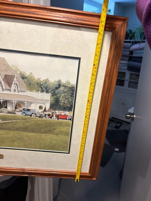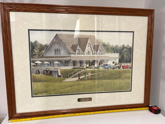 This framed Walter Campbell "Fairways" print captures a serene golf course scene and is in good used condition, making it a lovely addition to any room. This piece measures 45 inches in length and 32 inches in height, perfect for adding a touch of elegance to your space. * Artist: Walter Campbell * Title: Fairways * Dimensions: 45" x 32"